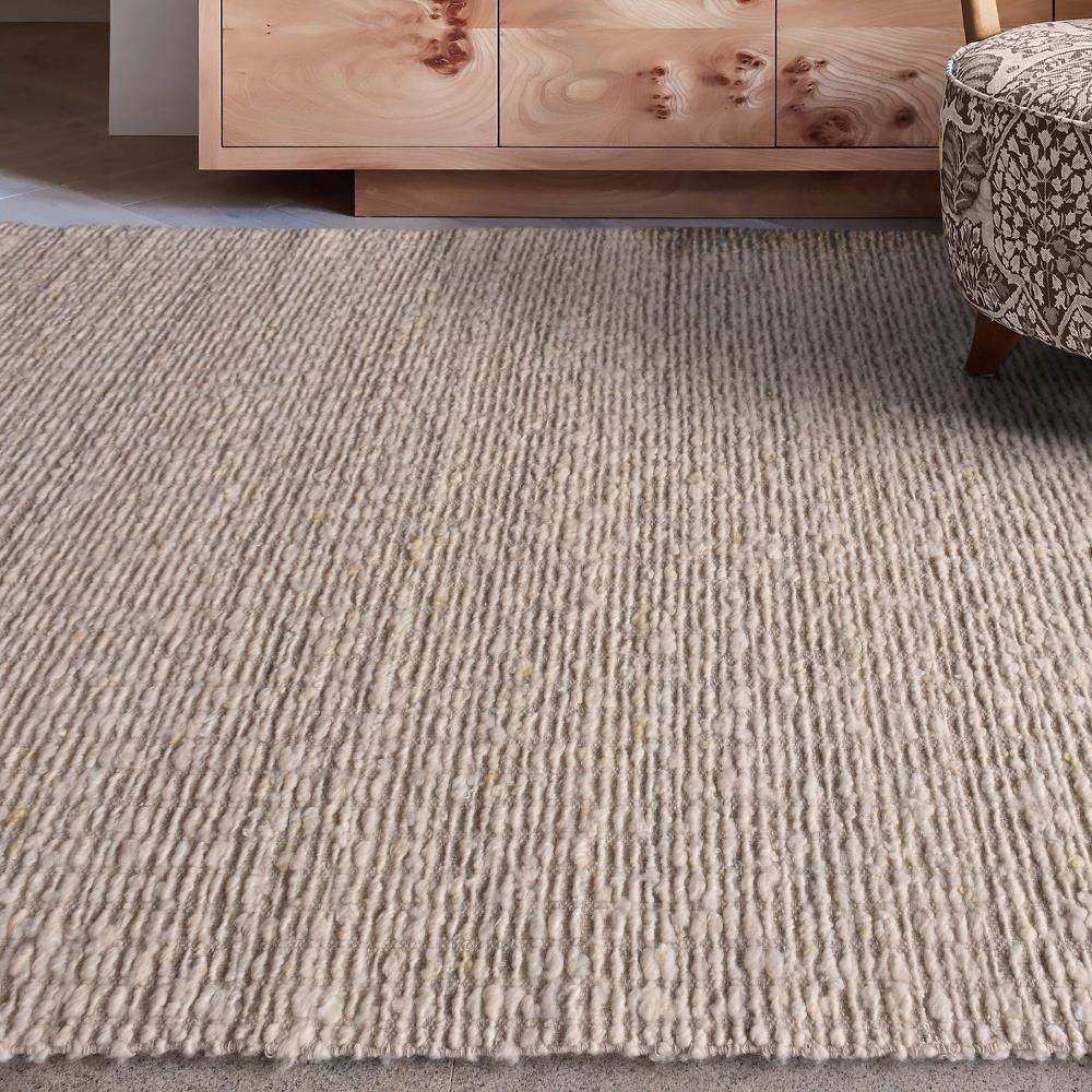 The Lovell, Ivory Rug Features A Hand Woven Construction Using Soft To The Touch New Zealand Wool With Heavy Striations For An Organic Casual Appeal.