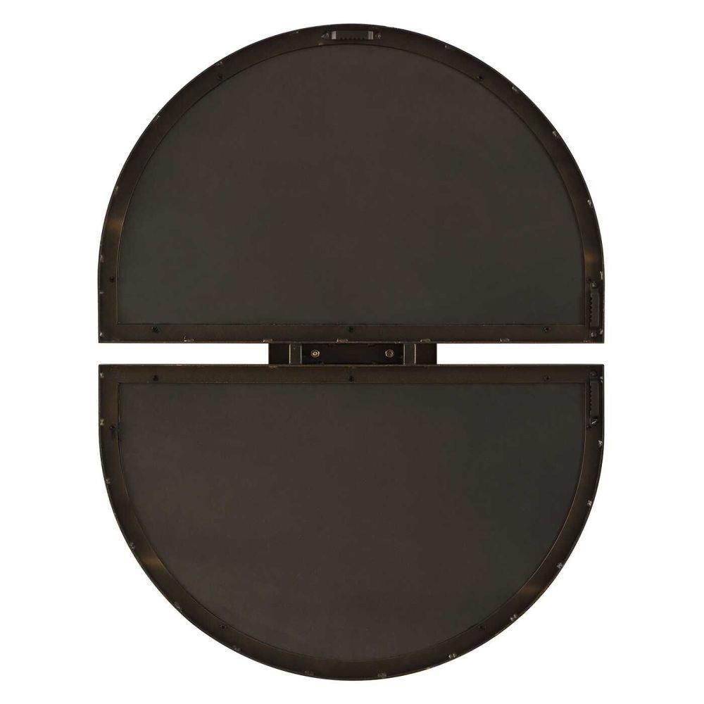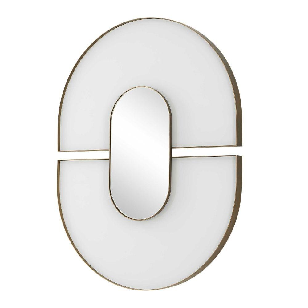 The Encase Oval Mirror Features A Striking Design With Two Semicircular Sections Of White Glass, Each Encased In A Sophisticated Antique Gold Iron Frame, Surrounding A Raised Center Mirror. May Be Hung Horizontal Or Vertical.