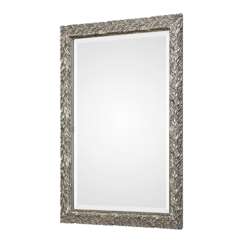 This Flowing Leaf Design Features A Delicate, 3-dimensional Texture, Finished In A Lightly Burnished Metallic Silver. Mirror Is Beveled. May Be Hung Horizontal Or Vertical.