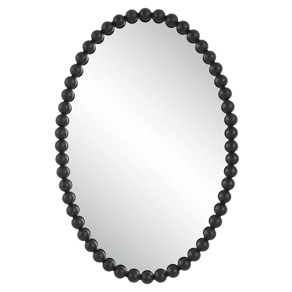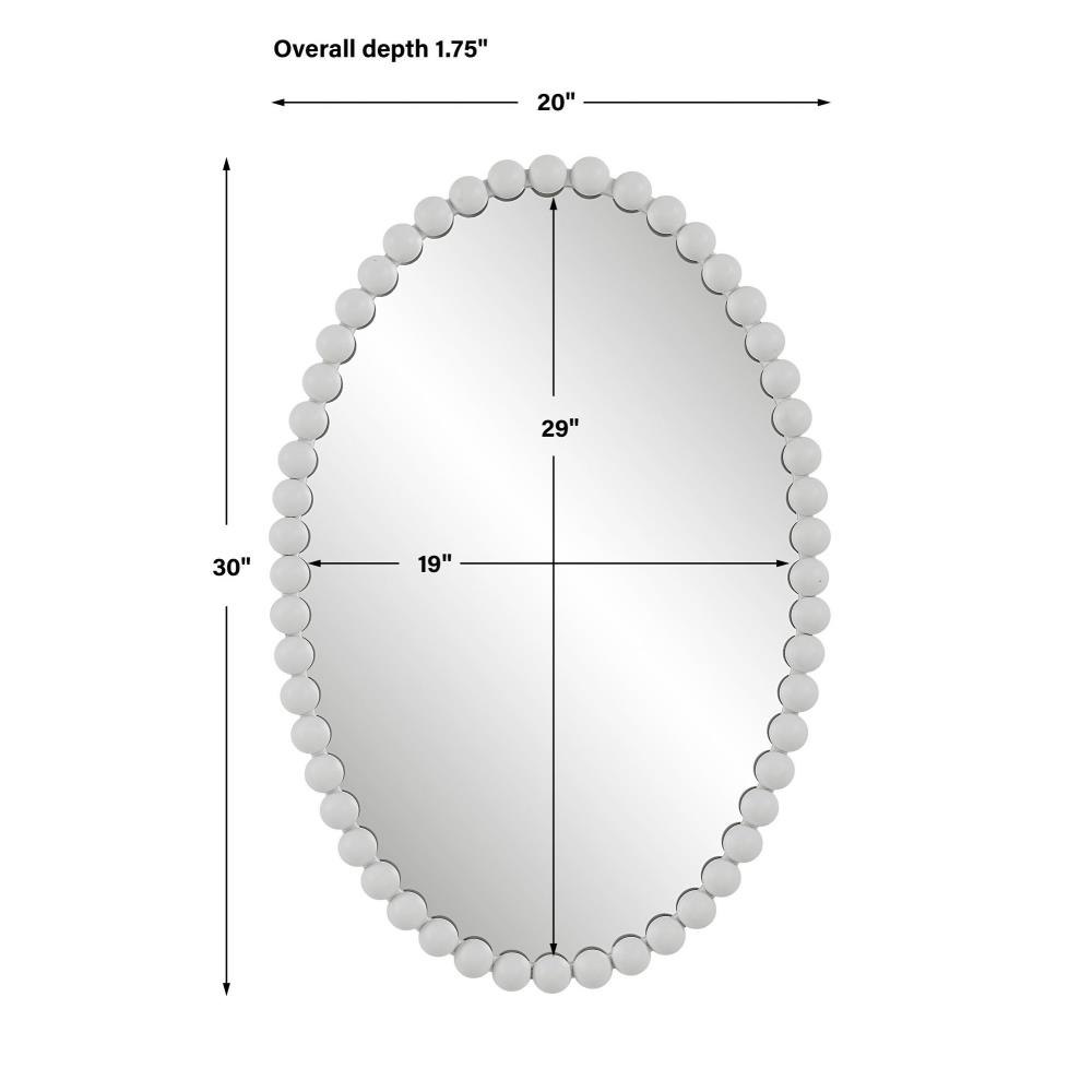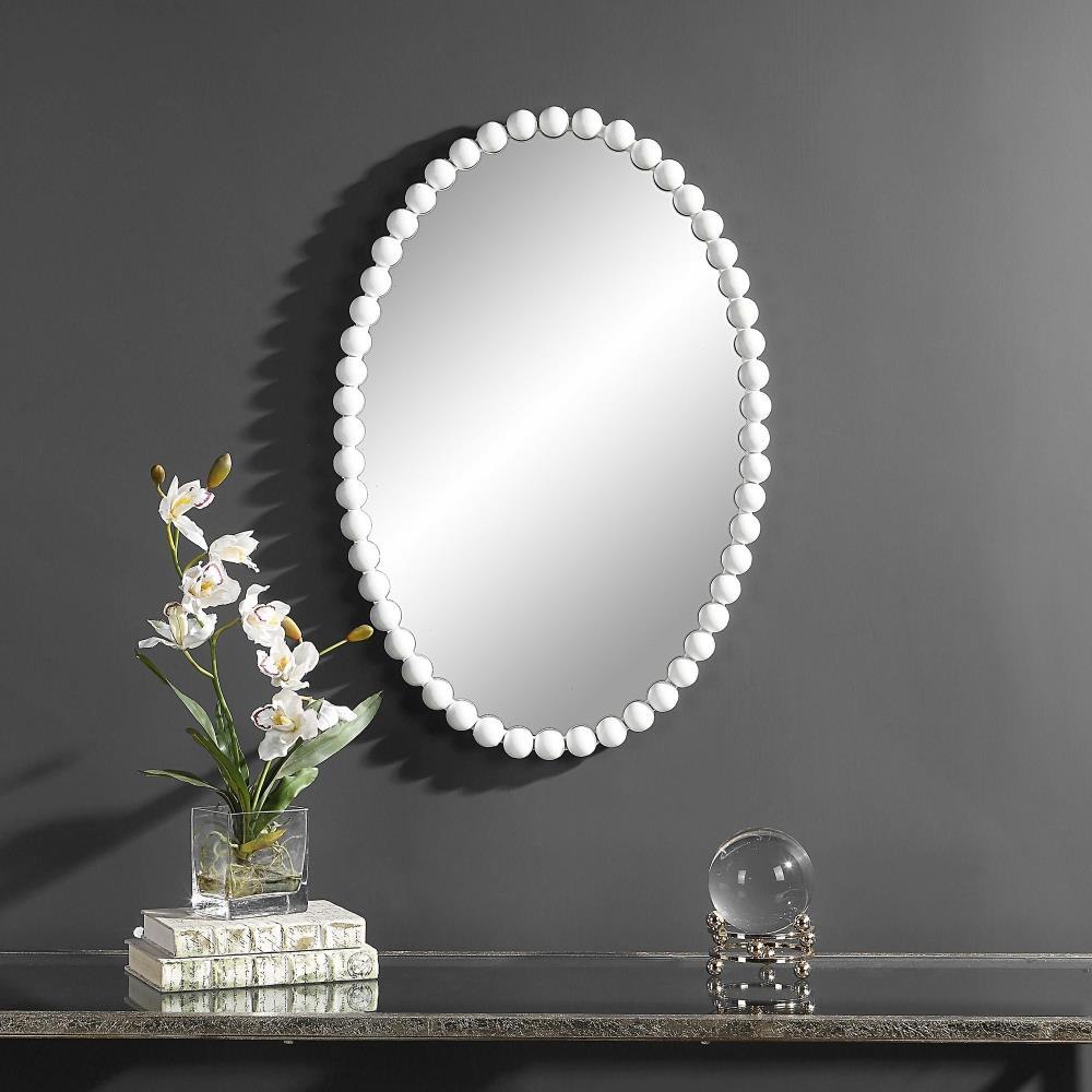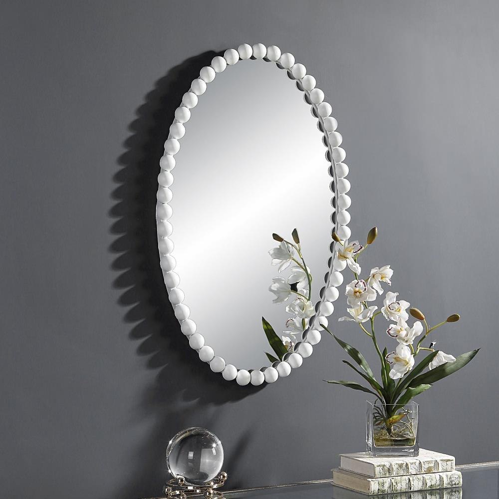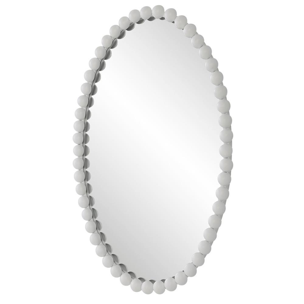 The Serna Oval Features An Elegant Curved Iron Frame With A Beaded Profile Finished In A Stylish Matte White. May Be Hung Horizontal Or Vertical.