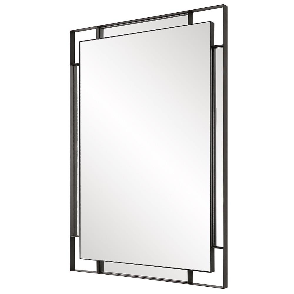 The Stellan Mirror Features A Strap Style Frame Finished In A Sleek Matte Black Surrounding A Floating Polished Edge Mirror With Accompanying Side Mirrors For Added Visual Dimension. May Be Hung Vertical And Horizontal.