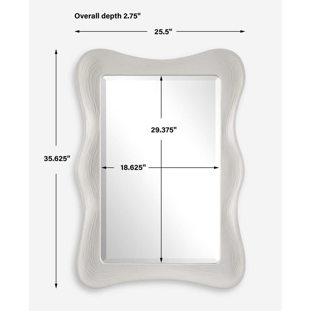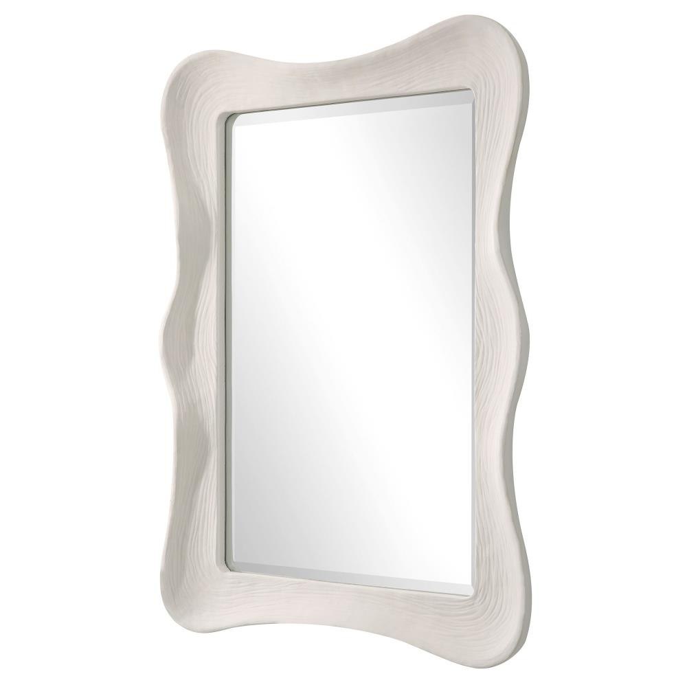 This Mirror Showcases A Contemporary Coastal Design With A Wavy Organic Shaped Frame Finished In Matte White With Noticeable Waves And Texture. Mirror Has A Generous 1 1/4” Bevel. May Be Hung Horizontal Or Vertical.