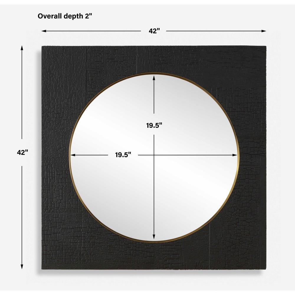 This Square Mirror Emulates The Timeless Art Of Wood Charring, Its Textured Faux Surface Finished In A Rich Black Captures The Essence Of Craftsmanship. Accentuated By A Brass-plated Stainless Steel Inner Band, This Mirror Radiates Sophistication And Style