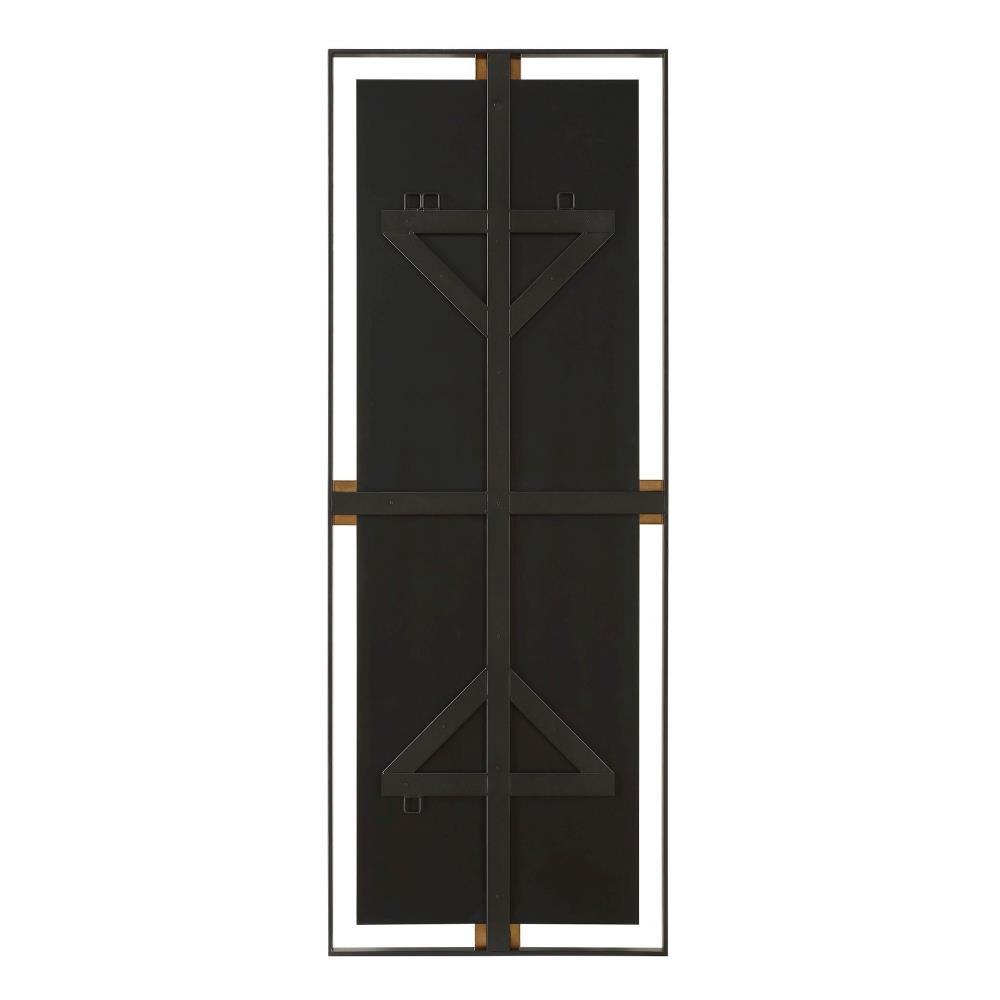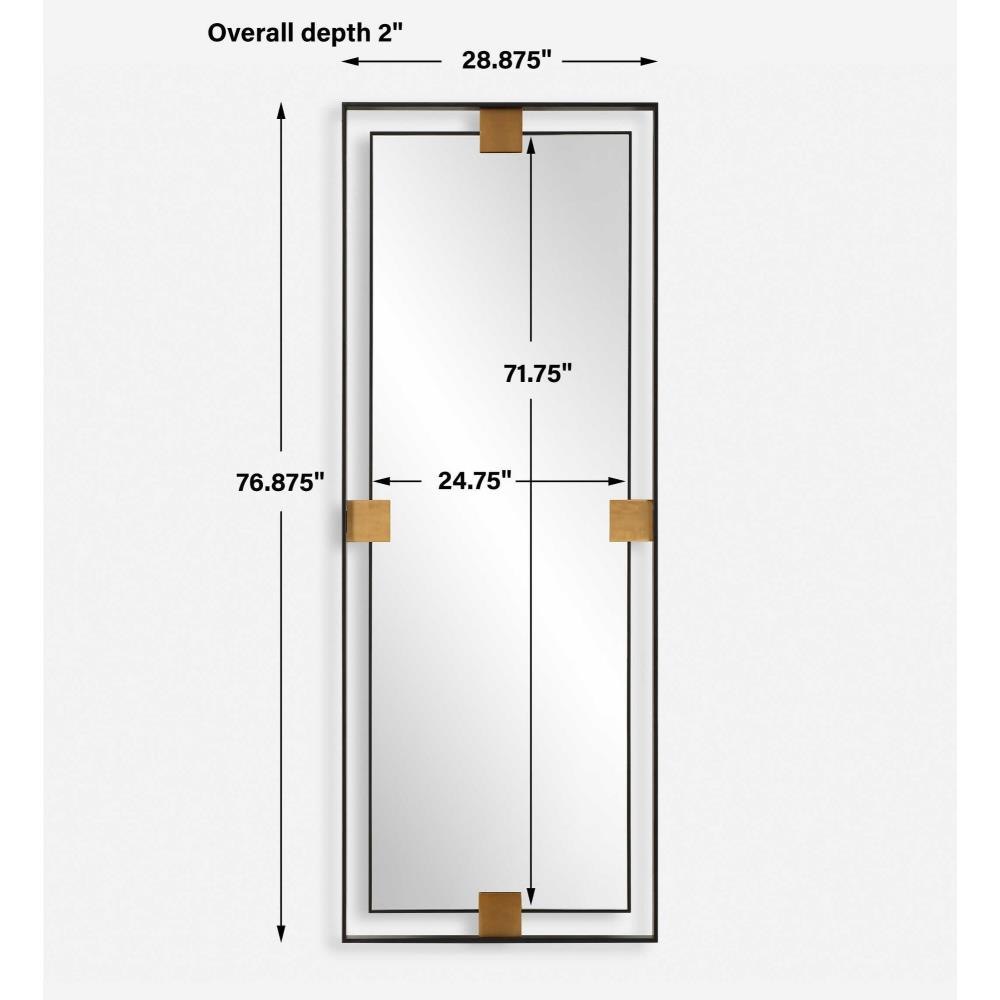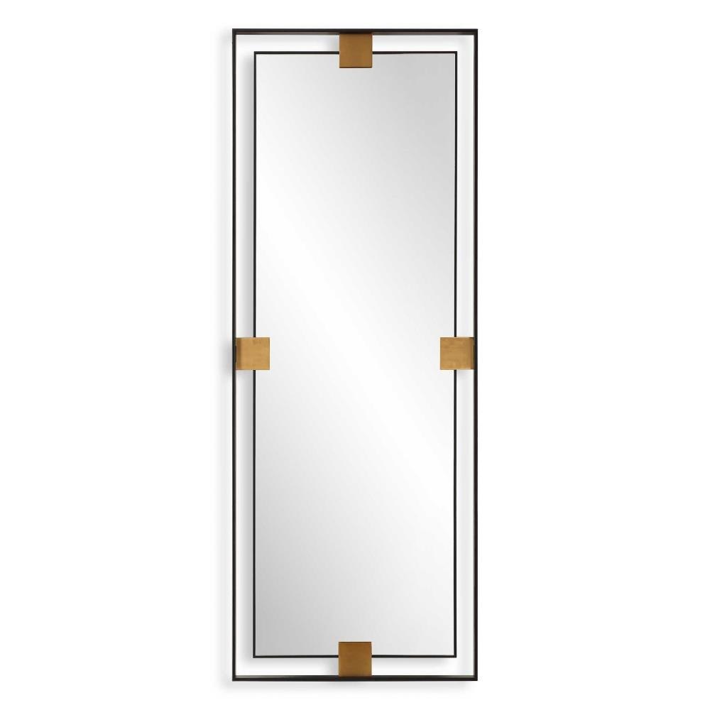The Cornerstone Mirror, Oversized In Stature, Features Plated Brushed Brass Details Surrounded By A Metal, Free-floating Boarder Finished In A Sleek Satin Black. May Be Hung Horizontal Or Vertical.