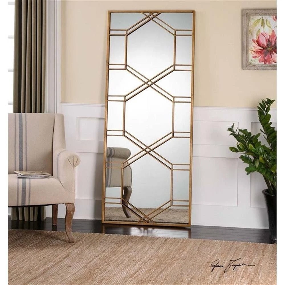 Uttermost Kennis Contemporary Metal and MDF Wood Leaner Mirror in Gold