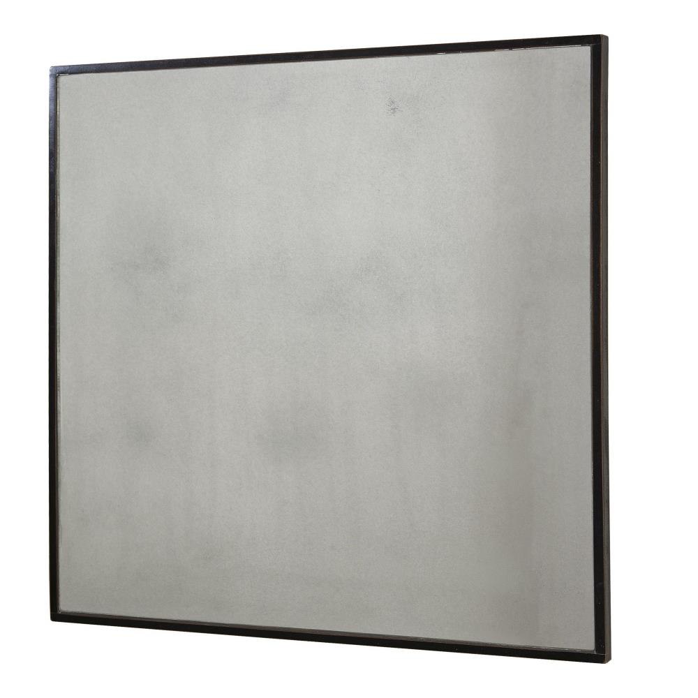Antiqued Mirrors Accented With Aged Black Frames With Red Undertones.