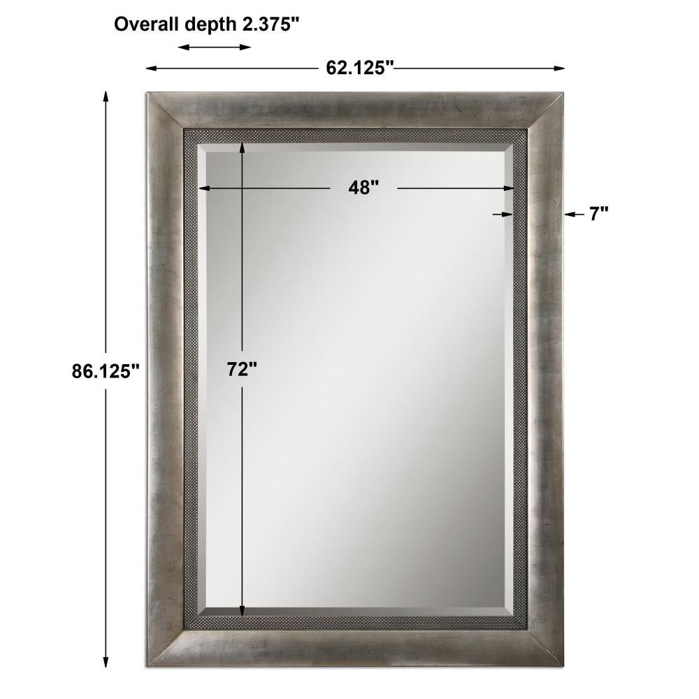 This Stately Mirror Features A Wood Frame Finished In Antiqued Silver Leaf With Black Undertones And A Gray Glaze. Mirror Has A Generous 1 1/4" Bevel. May Be Hung Horizontal Or Vertical.