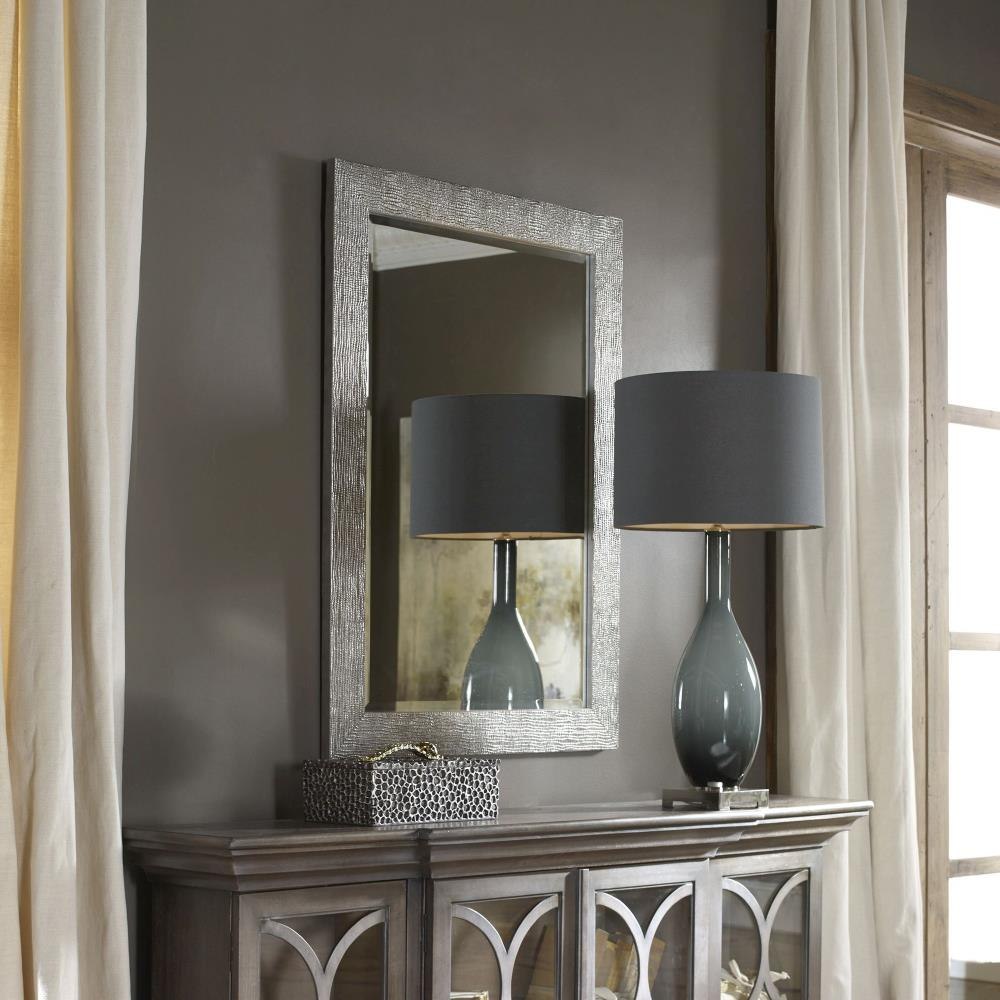 Frame Has A Textured, Silver Finish With A Light Gray Glaze. Mirror Is Beveled. May Be Hung Horizontal Or Vertical.