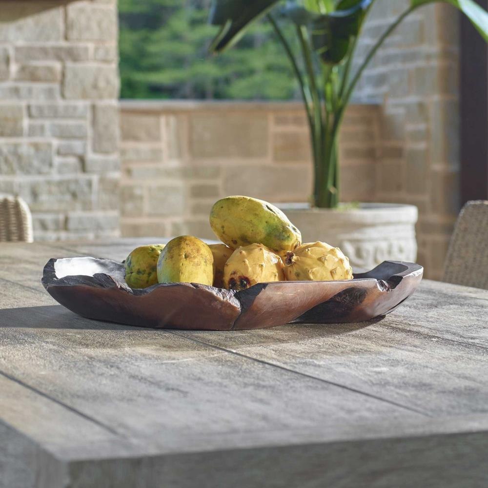 This Exquisite Round Teak Bowl Features An Organic Edge That Highlights The Natural Beauty Of The Wood. Each Bowl Is Uniquely Crafted, Showcasing Rich Grain Patterns And Warm Hues That Add A Touch Of Rustic Charm To Any Space. Perfect For Displaying Fruits, Or As A Decorative Piece, It Effortlessly Blends Functionality With Artistic Elegance, Making It A Stunning Centerpiece For Your Home. Because Each Is Individually Handcrafted, Natural Variation Will Occur From Piece To Piece. May Be Used Outdoors.