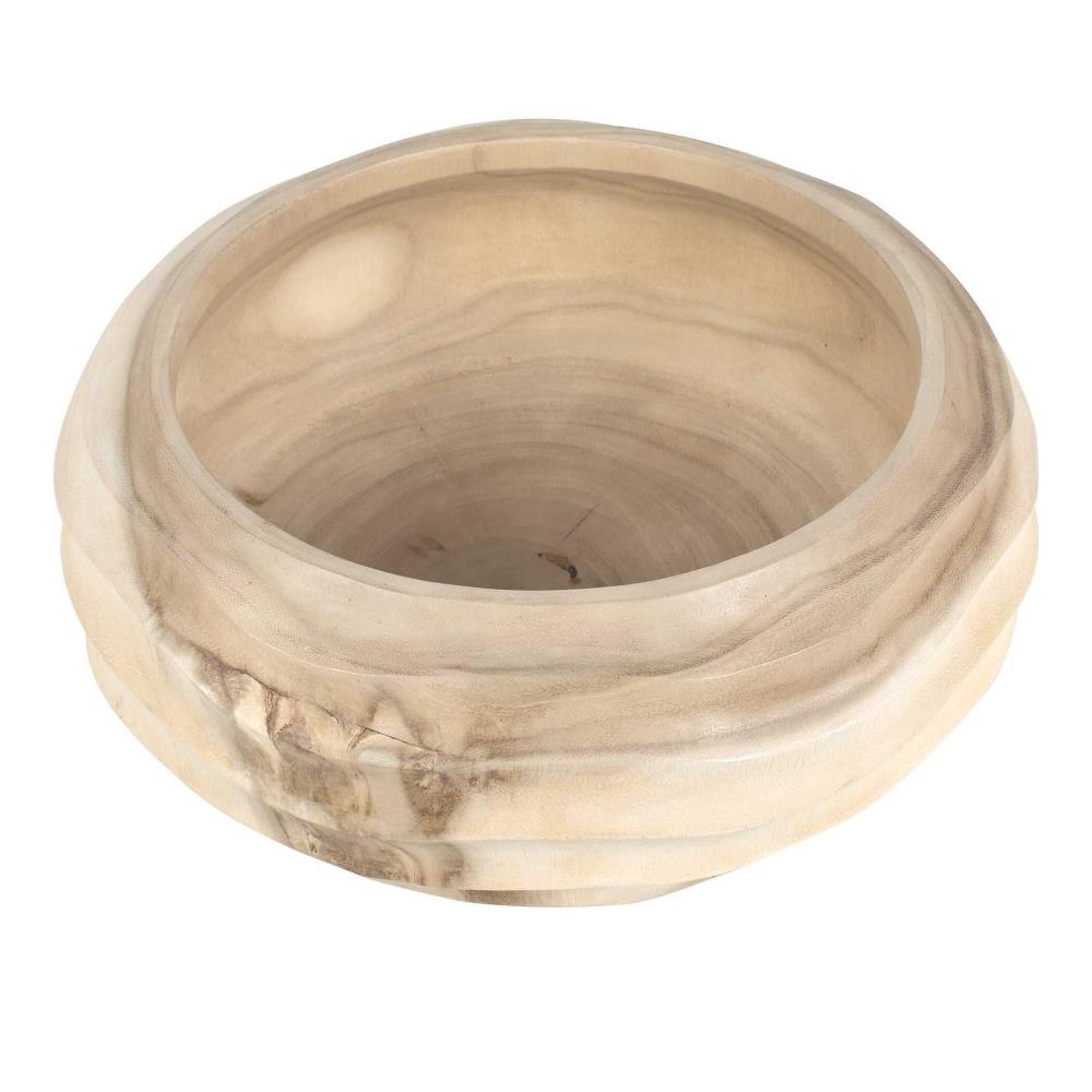 Handcrafted From Bleached Suar Wood, This Sculptural Bowl Features Fluid, Wave-like Carvings That Highlight The Wood's Natural Beauty. A Perfect Blend Of Organic Elegance And Modern Artistry, It Serves As A Striking Centerpiece Or Functional Statement Piece For Any Space.