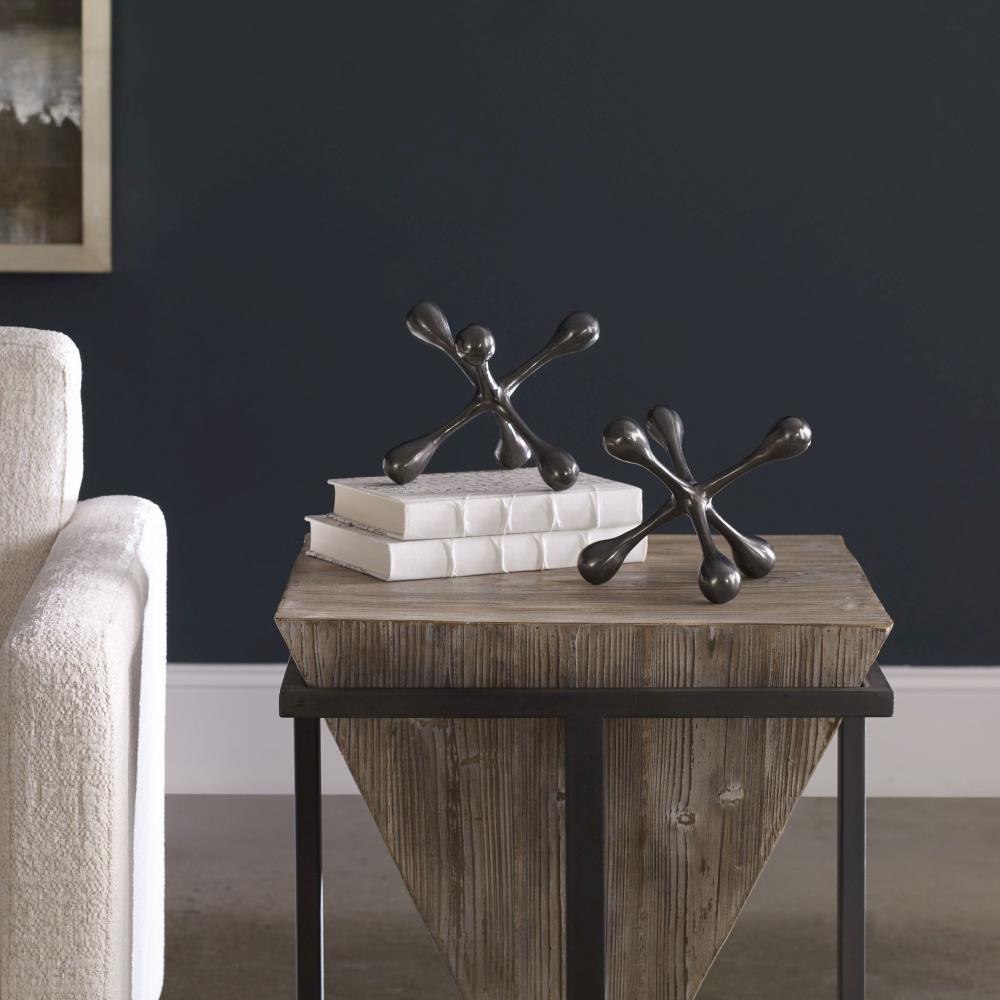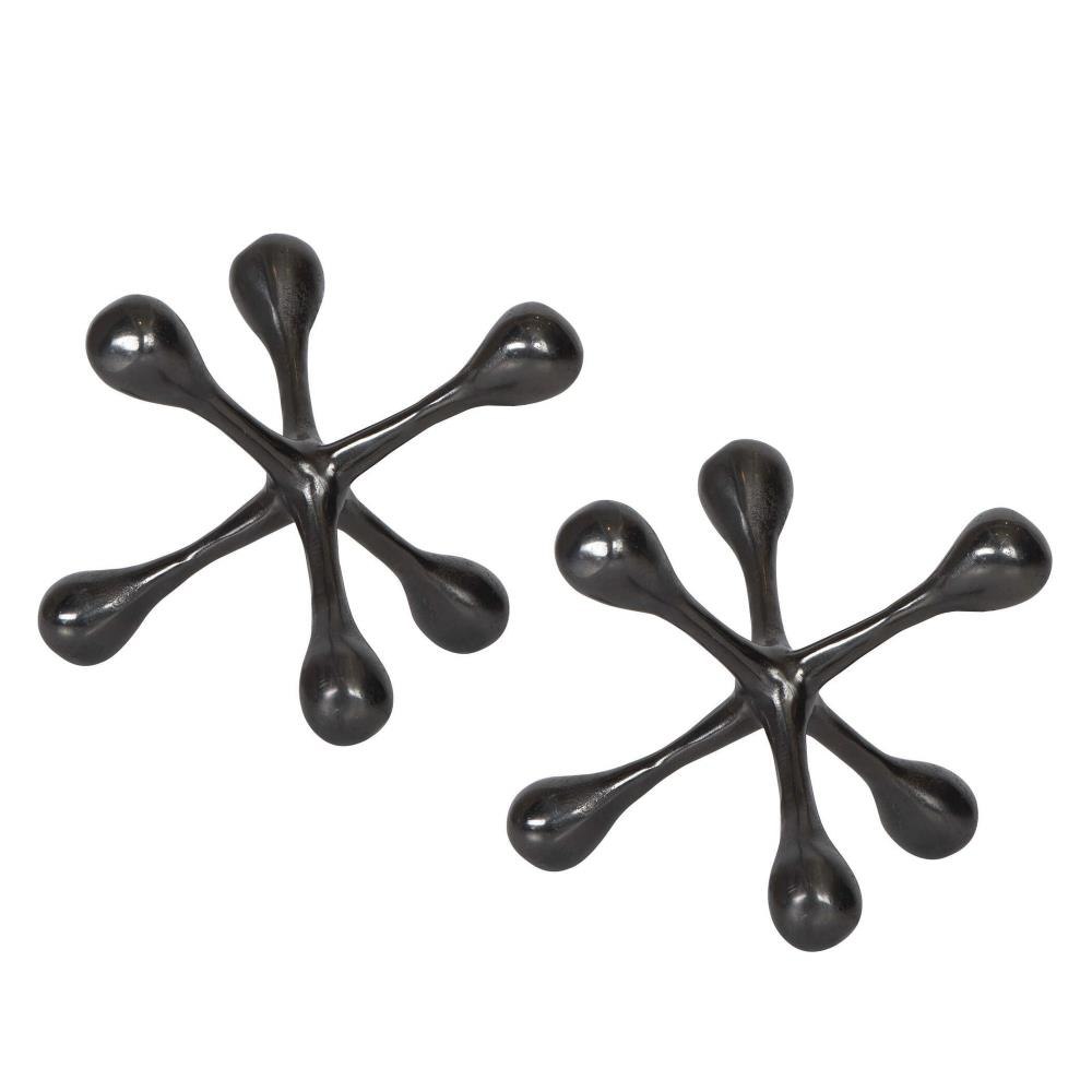 Set Of Two, Cast Aluminum Decorative Objects Feature A Black Nickel Finish.