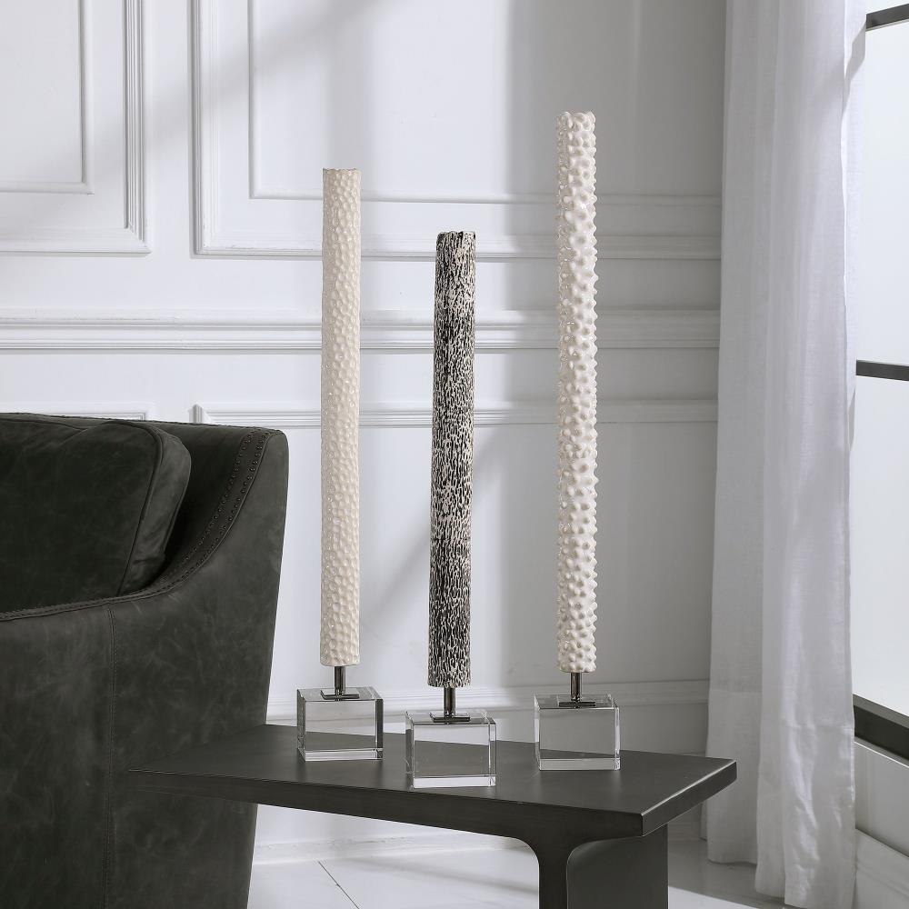 Ceramic Constructed Trio Is Inspired By Global Travels And Exhibits A Trendy Black And White Color Story. Each Is Accented By Polished Chrome And Crystal Details. Sizes: S-4x24x4, M-4x27x4, L-4x29x4