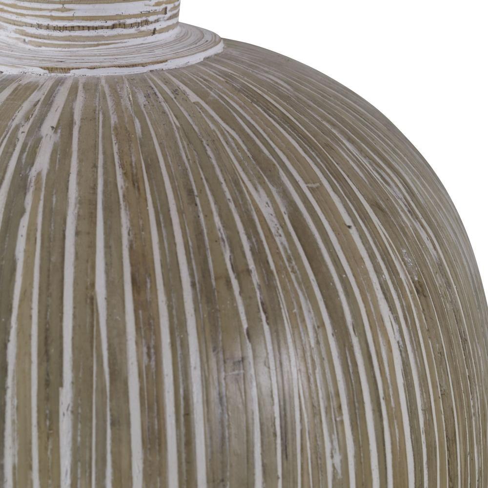 This Set Of Two Terra Cotta Vases Feature Natural Bamboo Pieces Hand-applied In A Stripe Motif Accented By A White Washed Finish. Sizes: S- 10x12x10, L- 11x16x11