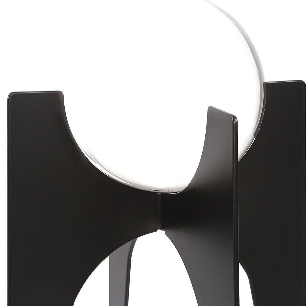 Crystal Spheres Elevated On Iron Bases Finished In A Brushed Black. Sizes: S-6x10x6, L-7x16x7