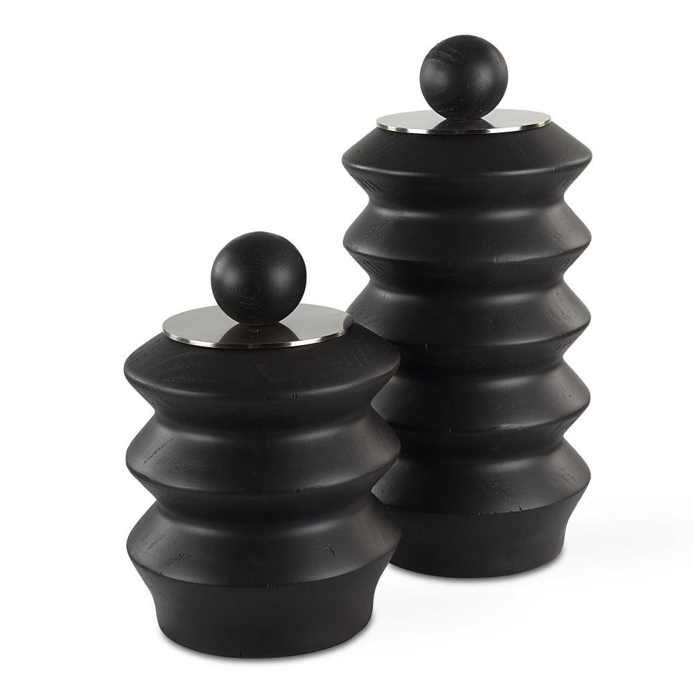 Accent Any Table Or Countertop With These Black Stained Wood Containers With Brushed Nickel Lift-off Lids. Sizes: S-7x10x7, L-7x14x7
