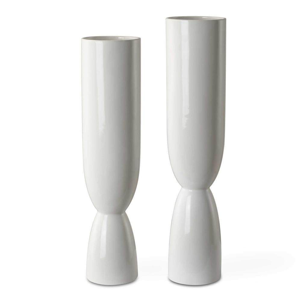 This Set Of Two Ceramic Vases Feature A White Fired Glaze Over Their Unique Shape. Sizes: S-5x18x5, L-5x20x5