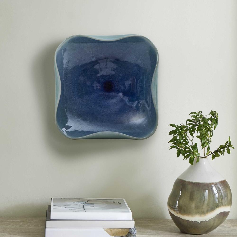 Elevate Your Decor With This Stunning, Handcrafted Ceramic Bowl Featuring A Mesmerizing Blue-green Glaze. Its Organic, Wavy Edges And Glossy Finish Create A Striking Visual Appeal, A True Blend Of Artistry And Functionality. May Be Hung On Wall Or Used As Tabletop Accessory. Safe For Outdoor Use, But Protection From Freezing Temperatures Is Recommended.