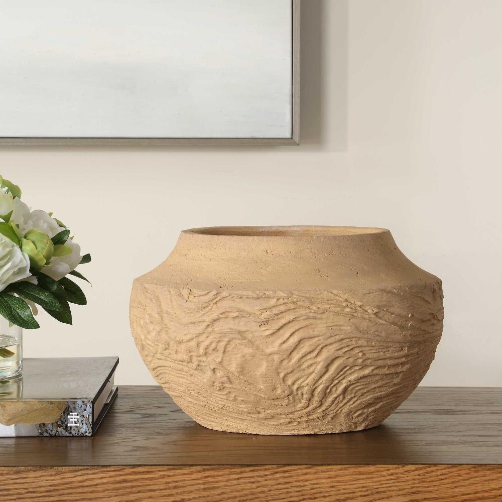 Handcrafted From Terracotta, This Vase Features An Organic Texture Reminiscent Of Flowing Sand Dunes. Its Earthy Tones And Sculptural Form Make It A Striking Accent Piece, Perfect For Adding Warmth And Artistry To Any Space.
