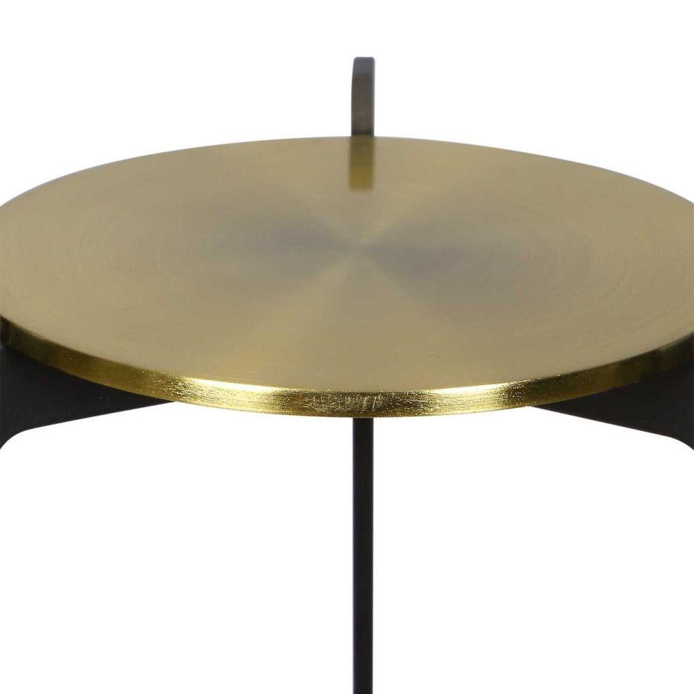 This Striking Pair Of Candle Holders Features A Modern Base Crafted From Iron In A Matte Black Finish With Subtle Antique Brass Details For Added Luxury. Two, 3x3 Distressed White Candles Included.