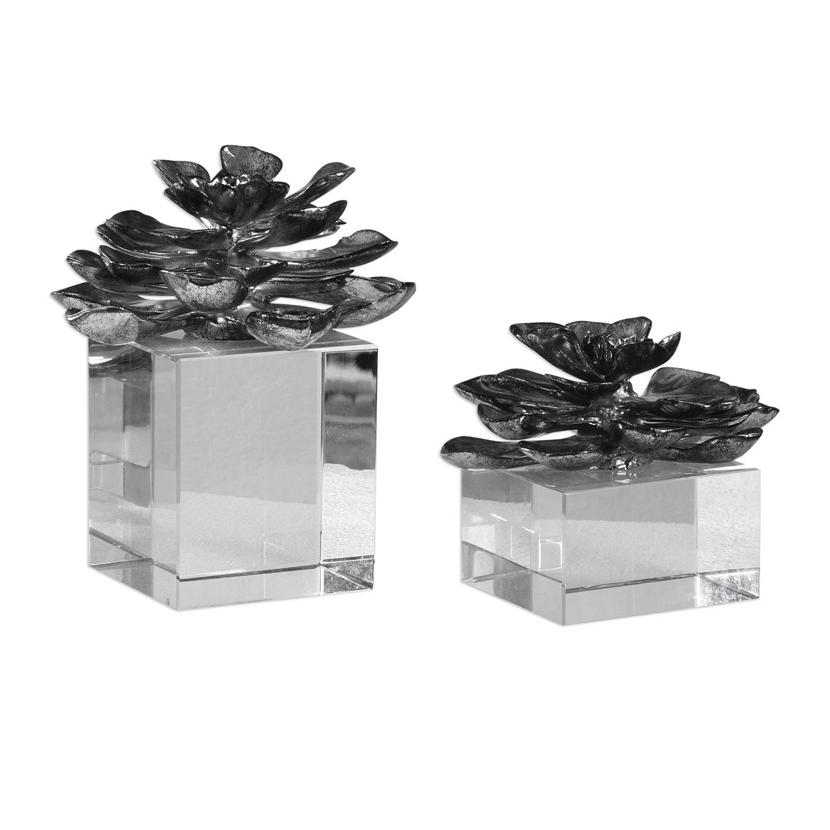 Uttermost 20158 Indian Lotus Metallic Silver Flowers Accents, Set of 2