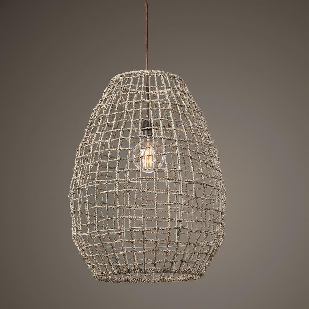 Natural Woven Sea Grass In A Cross Weave Pattern Gives Us This Wonderful Airy 1 Lt Pendant With Brushed Aged Bronze Details. Supplied With 1-60 Watt Max Edison Socket And Includes 15'cord For Adjustable Installation.