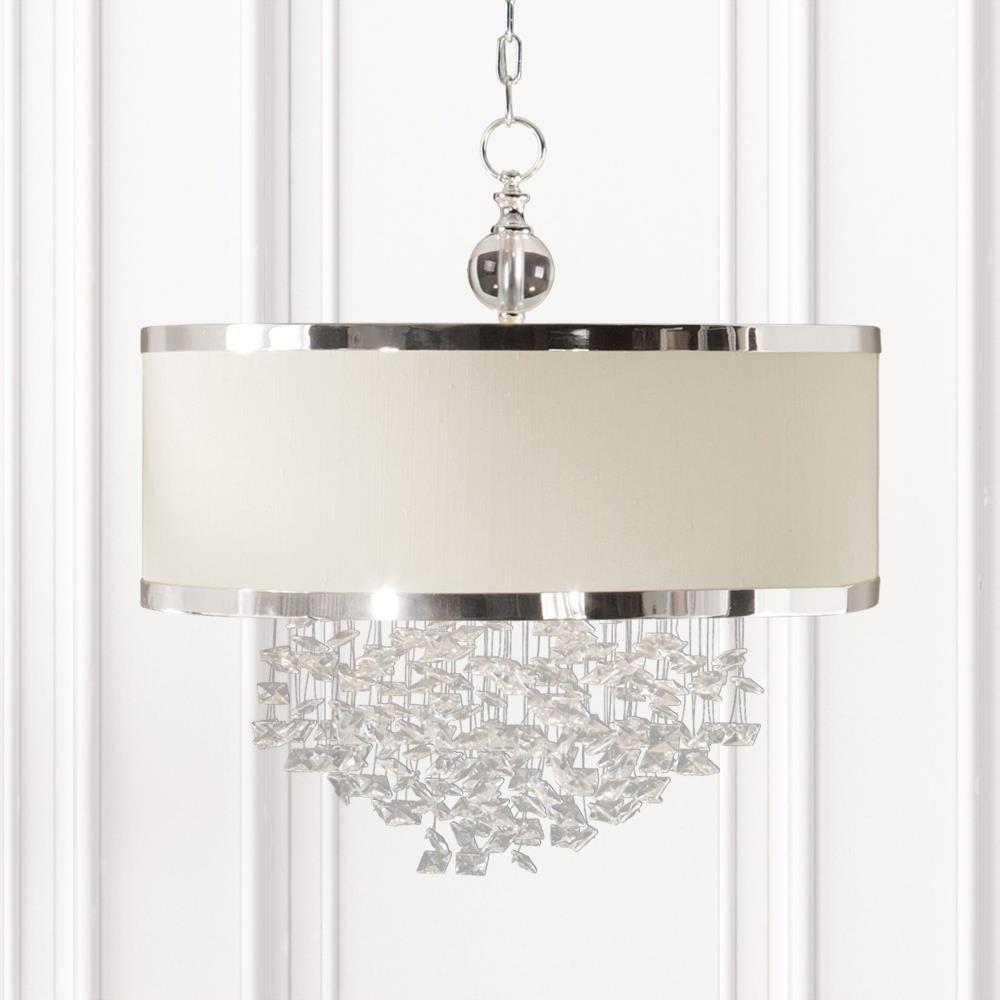 The Classic Appeal Of Crystal Is Updated For Today's Sophisticated Tastes, With Free Falling Crystals And A Silver Trimmed, Antique-white Linen, Drum Shade.