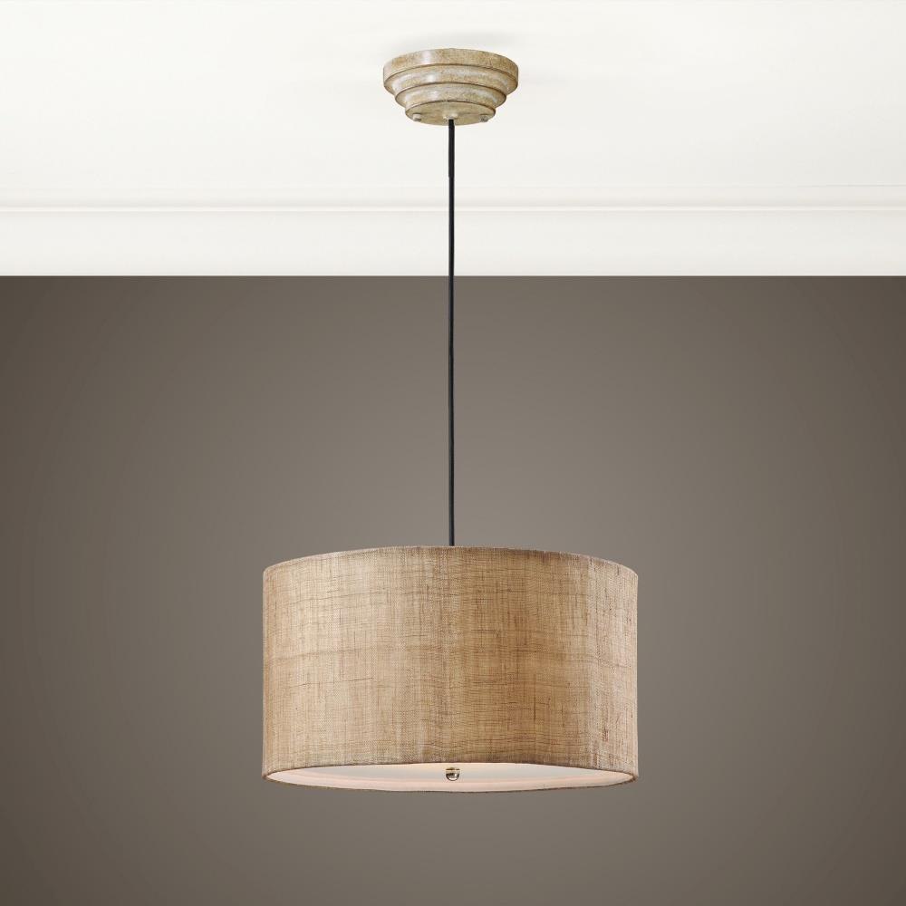 Antiqued Burlap Weave Paired With A White Inner Liner Infuse A Casual Look With Sophisticated Appeal. Frosted Glass Diffuser Included.