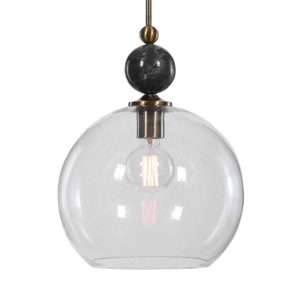 - Uttermost Mendota 1-Light Glass Iron and Marble Pendant in Aged B