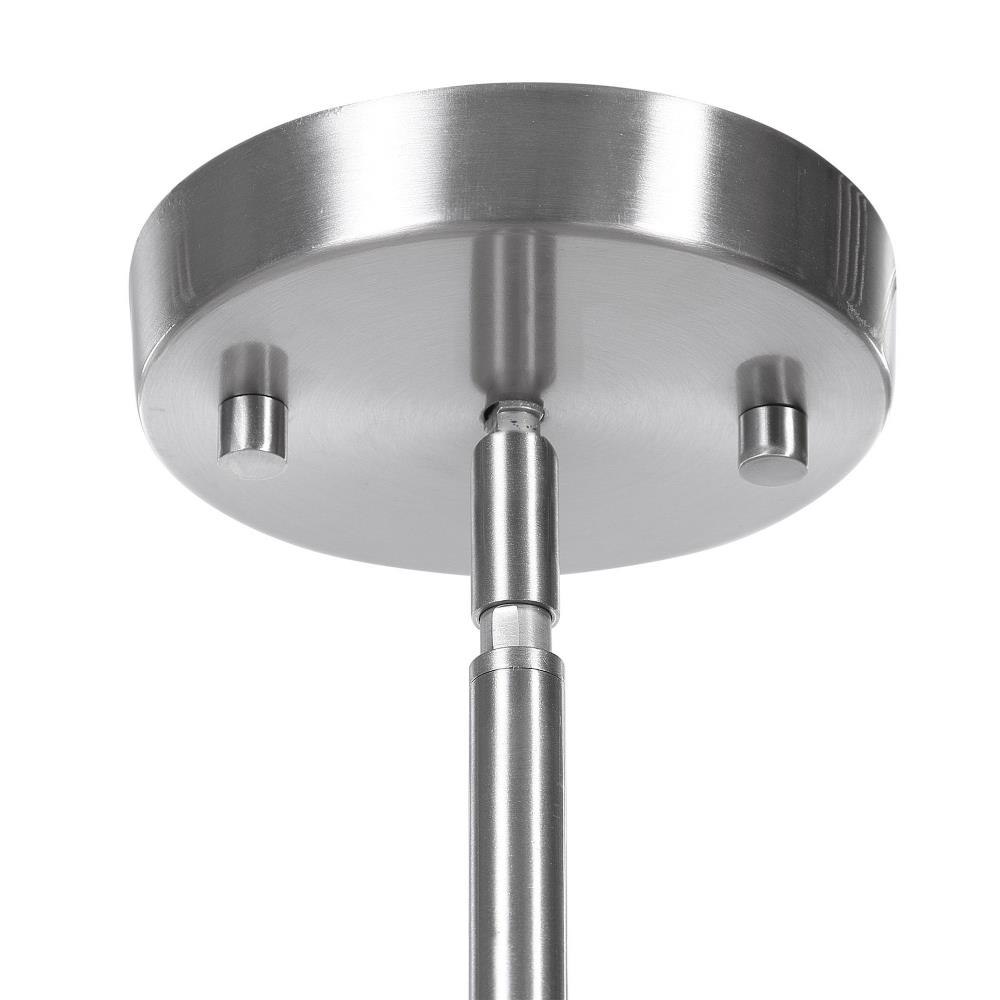 The Feeling Of Windswept Sky & Clouds Are Brought To Life In This 1 Lt. Pendant With A Focus To The Swirling White & Blue Handmade Glass Shade, Each Piece Will Have Slight Variations. Finished In Brushed Nickel And Accented With A Subtle Crystal Disk. 1-60 Watt Max Edison Socket. Supplied With 15' Wire, And 3-12" Stems & 1-6" Stem For Adjustable Installation.