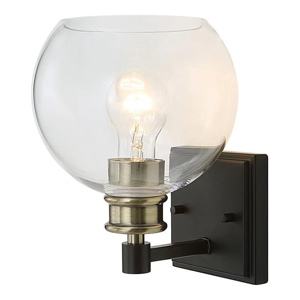 Uttermost Kent Edison 1-light Coastal Glass and Steel Sconce in Black and Brass