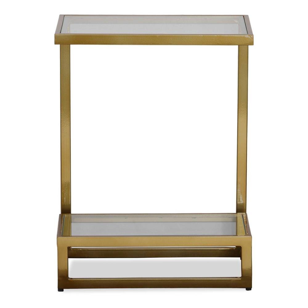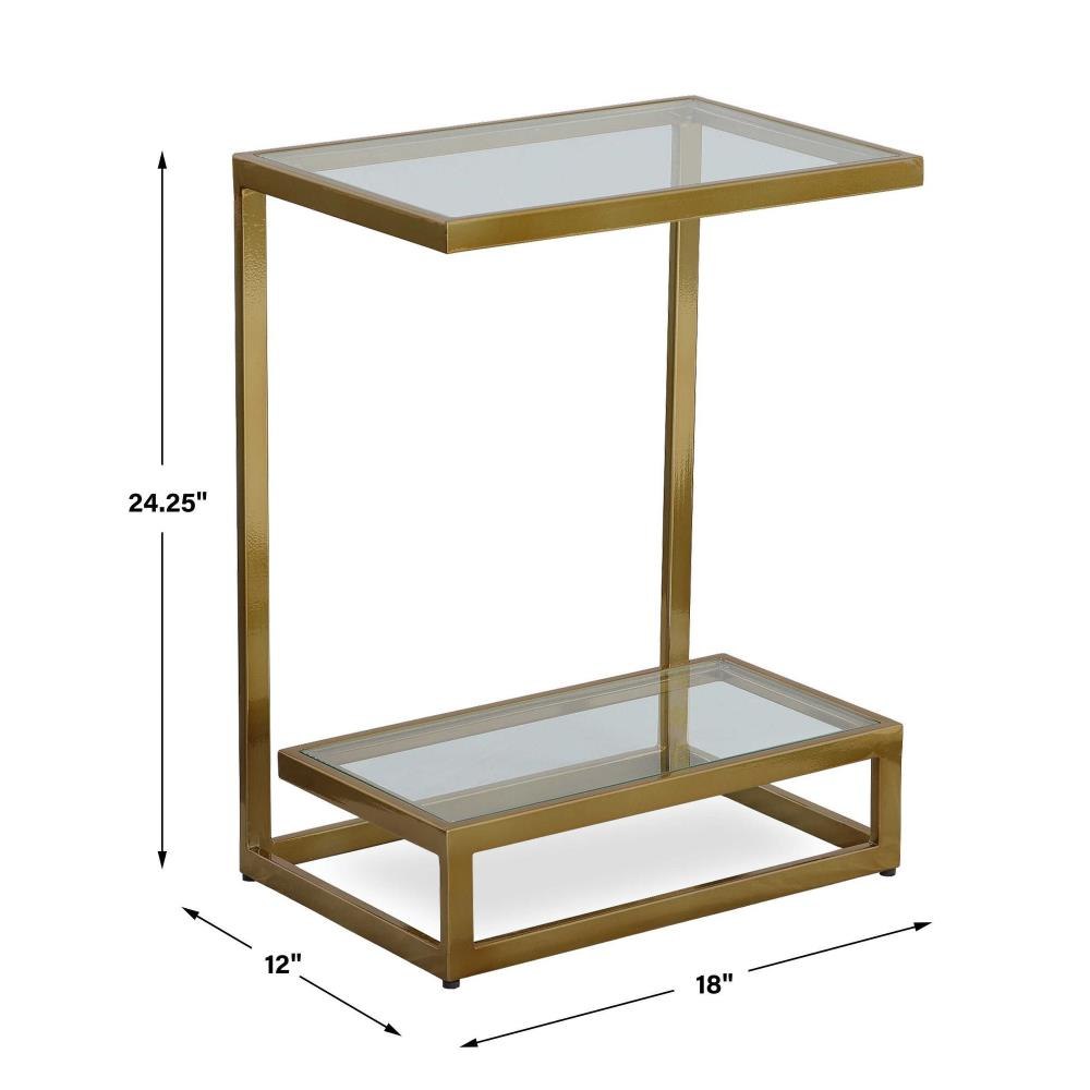 The Musing Accent Table Combines Functionality And Style. The Streamlined Iron Body Is Finished In Brushed Brass With Double Floating Glass, Perfect To Rest Your Favorite Book And A Beverage.