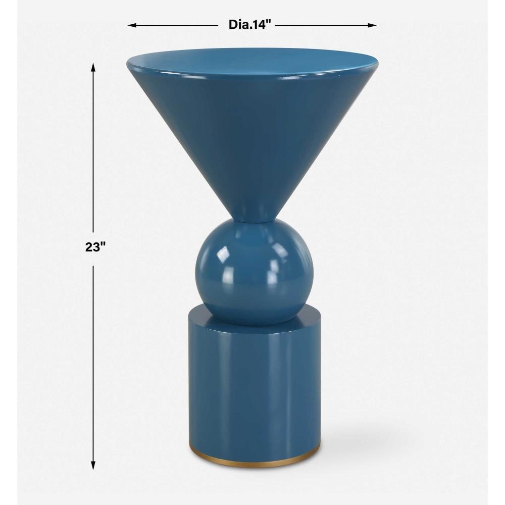 A Clean Accent Table With A Lustrous Blue Finish, The Various Geometric Shapes Add A Modern Touch To Any Space. A Painted Gold Base Gives This Table A Durable Yet Sleek Metallic Accent.