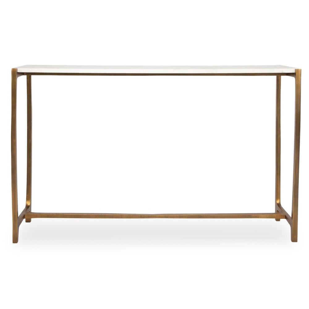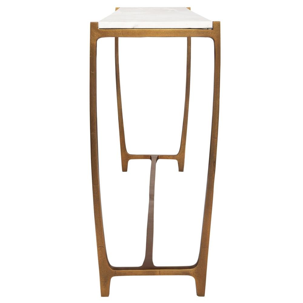 With Understated Sophistication, The Affinity Console Table Complements With Ease. Featuring A Shapely Cast Aluminum Base In Antique Gold That Encapsulates A Natural White Marble Top. True To The Nature Of Natural Materials, Each Piece Will Have Unique Marbling And Veining Throughout.