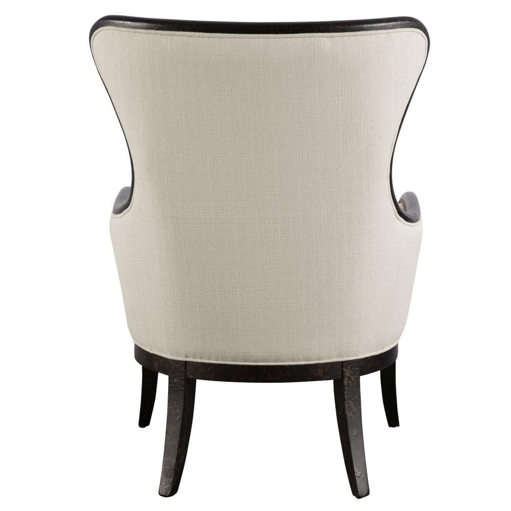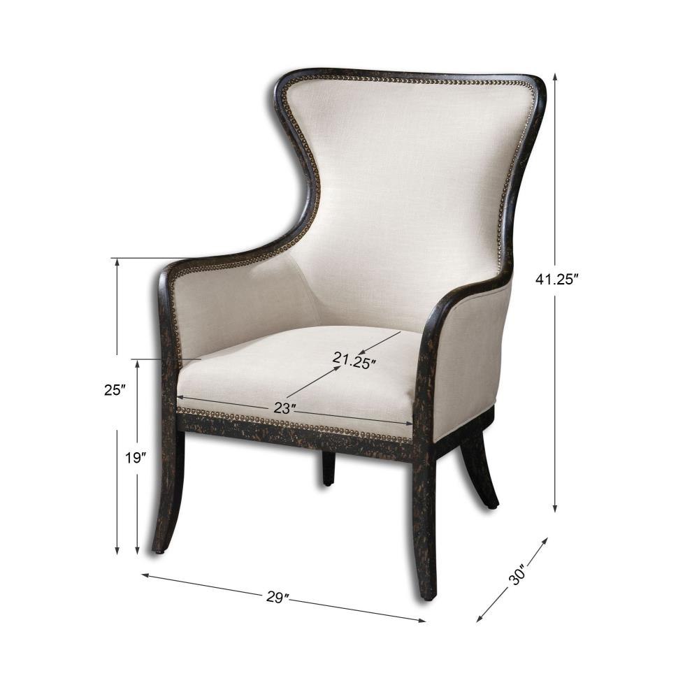 Woven Tailoring In Shimmery Sand Features Teflon-« Fabric Protector And Brass Nail Accents. Exposed Wood Frame Is Solid Wood With Reinforced Joinery And Hand Applied, Weathered Black Finish. Seat Height Is 20".