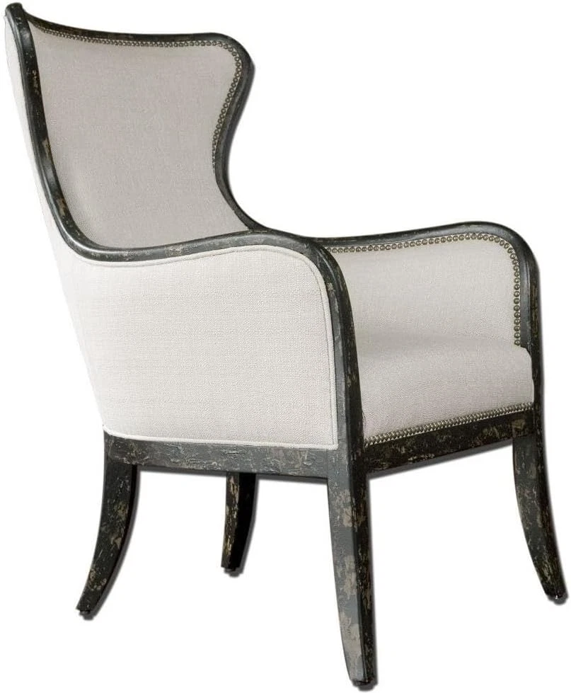 Elegant Sandy Wing Back Armchair in Solid Wood for Timeless Comfort