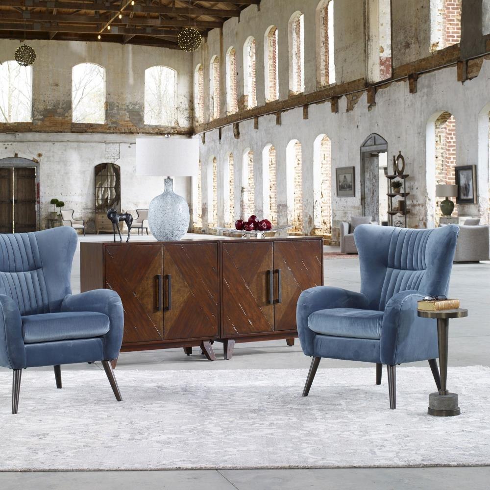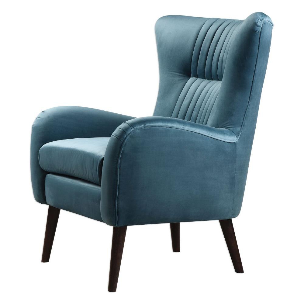 Add A Fresh Jewel Toned Touch To Your Space With This Mid-century Styled Accent Chair Featuring A Flare Black And Channel Tufted Accents. Its On-trend Teal Blue Polyester Velvet Is Finished With A Welt Trim, On Tapered Birch Legs Stained In A Rich Espresso. Seat Height Is 20".