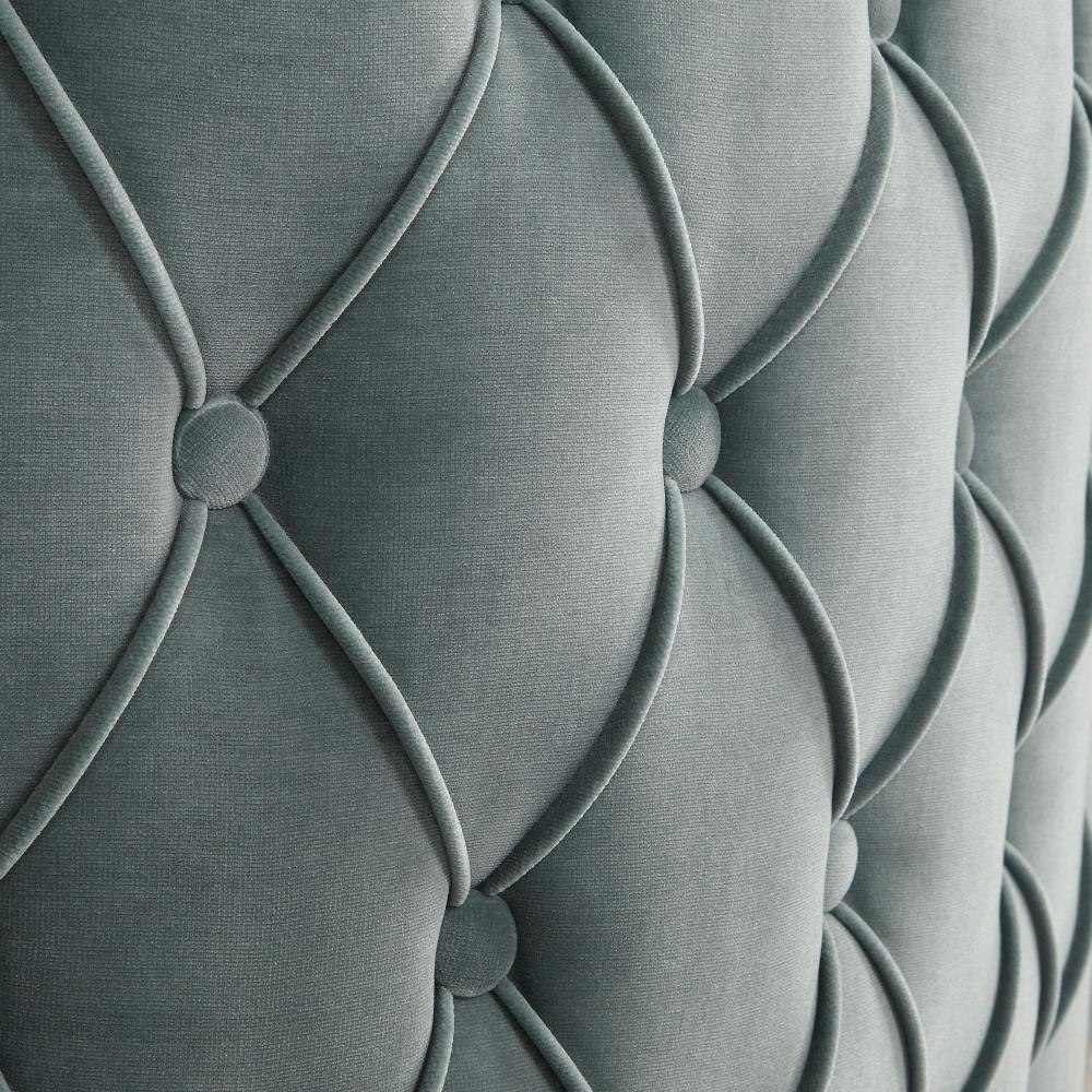 This Stylish Barrel Chair Features A Plush Diamond Button Tufted Outside In A Luxurious Slate Blue Velvet Lined With Antique Brass Nail Head Trim, On Metal Tapered Dowel Legs Finished In Brushed Brass. Seat Height Is 19".