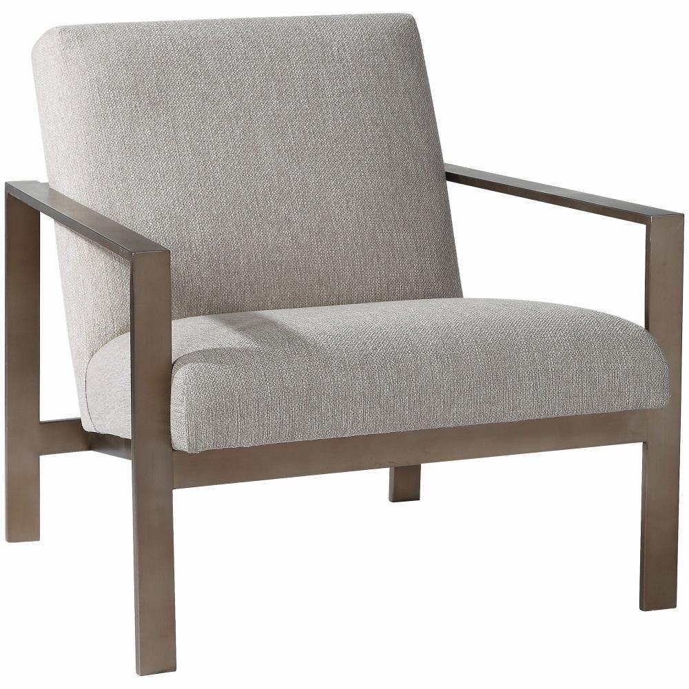 With Clean Contemporary Lines, This Open Frame Design Features A Stainless Steel Construction Finished In Antique Brushed Brass With Comfortable Box Seat Cushions Tailored In A Treated Warm Oatmeal Woven Fabric. Seat Height Is 17".