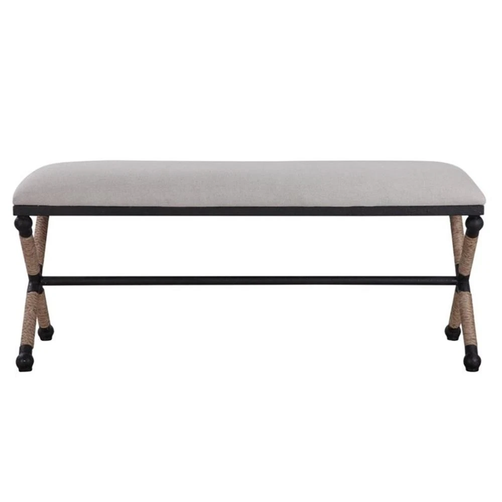 Uttermost Firth Coastal Iron MDF and Fabric Bench in Oatmeal Beige