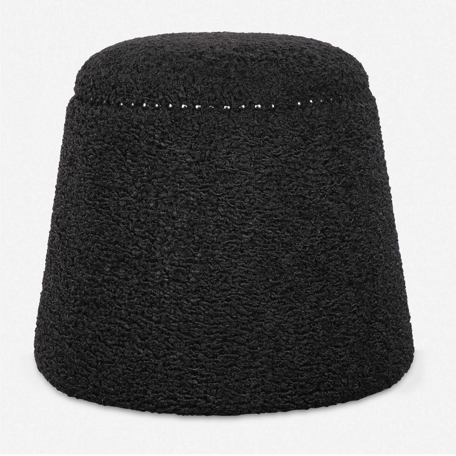 Uttermost 23575 Gumdrop Black Faux Shearling Plush Ottoman Seat or Footrest