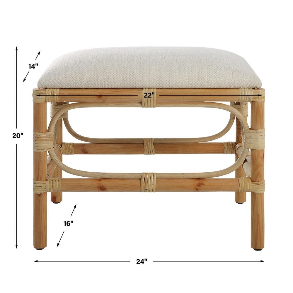 A Refreshing Coastal Accent Featuring A Casual Cotton Blend Navy And White Striped Seat, Over A Naturally Finished Solid Wood Base With Rattan Wrapped Accents. Perfect Doubled Up At The Foot Of A Bed Or Under A Console Table.