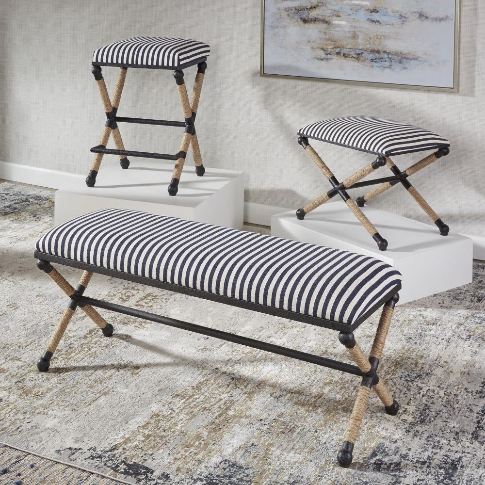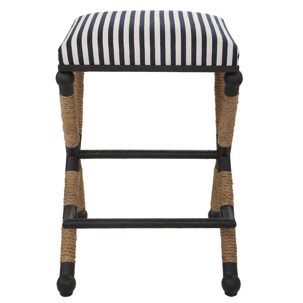 Rustic Iron Frame With A Nautical Touch, Wrapped In Natural Fiber Rope Accents. Cushioned Top Is A Sturdy, Sailor-striped Cotton In Crisp Navy And Cream With Performance Treatment. Seat Height Is 28".