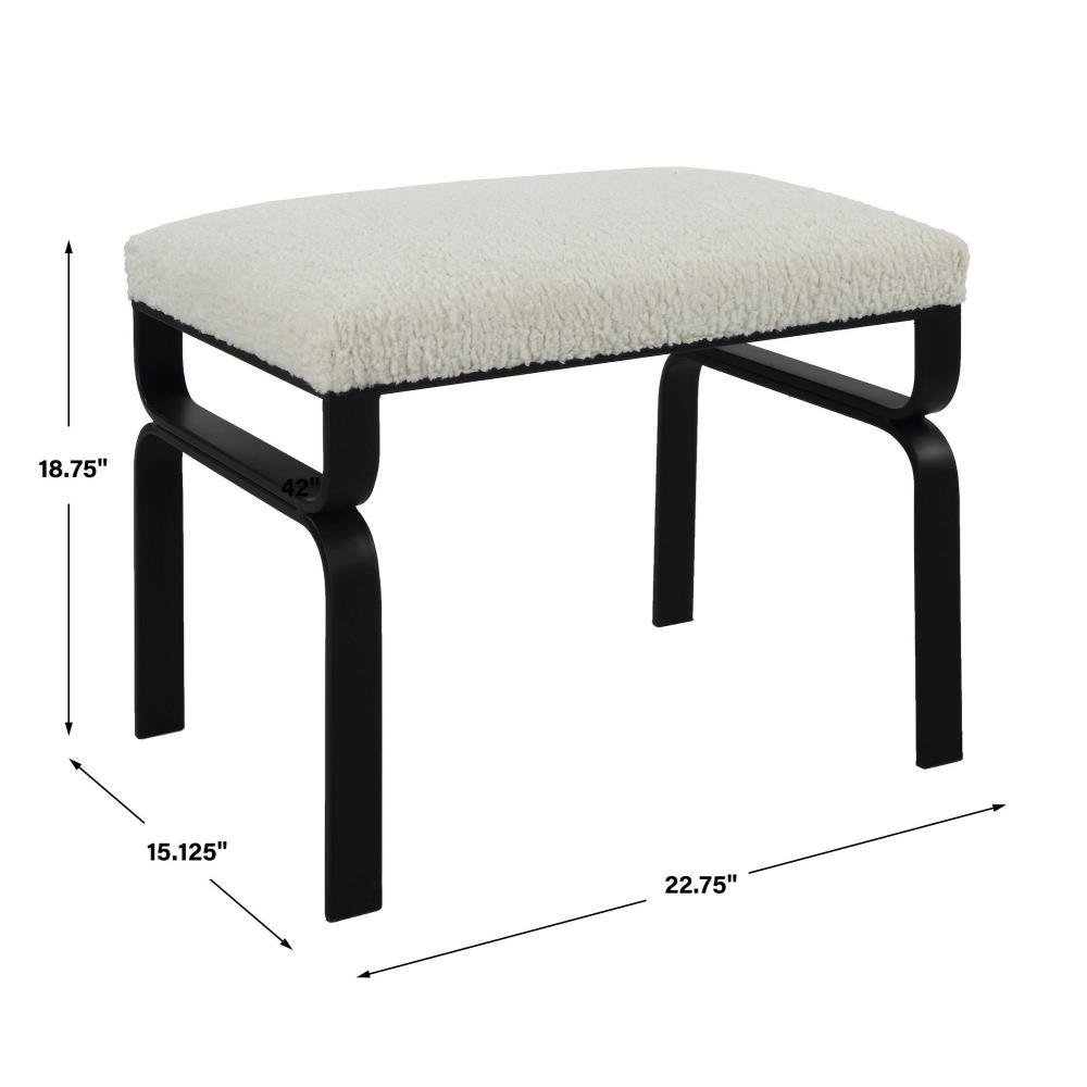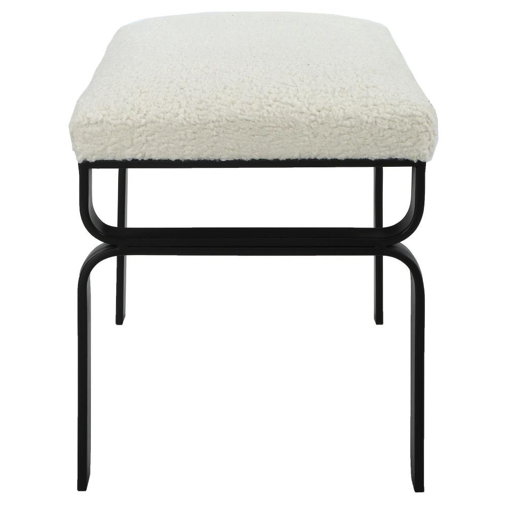 Displaying A Streamlined Black And White Design, This Small Bench Is Supported By A Curved Satin Black Iron Base With A Plush Upholstered Seat In White Faux Shearling.