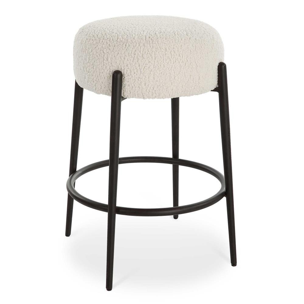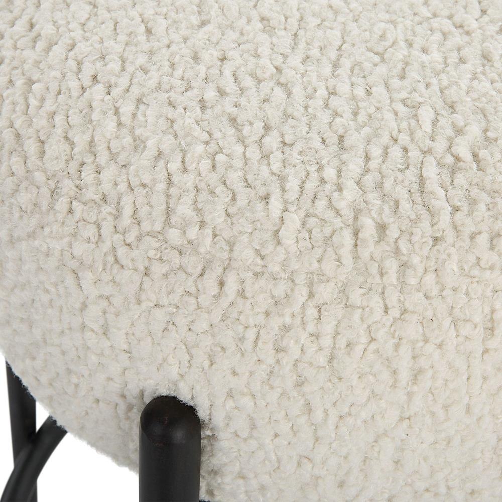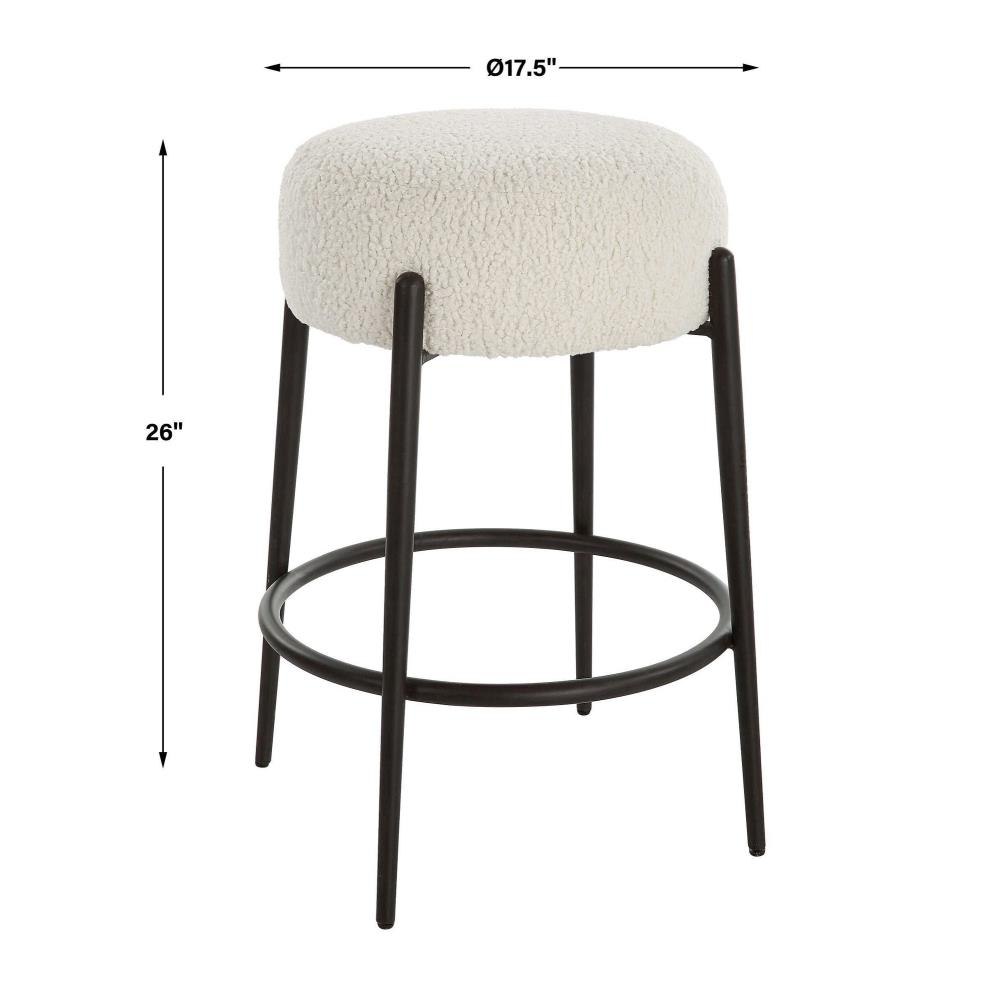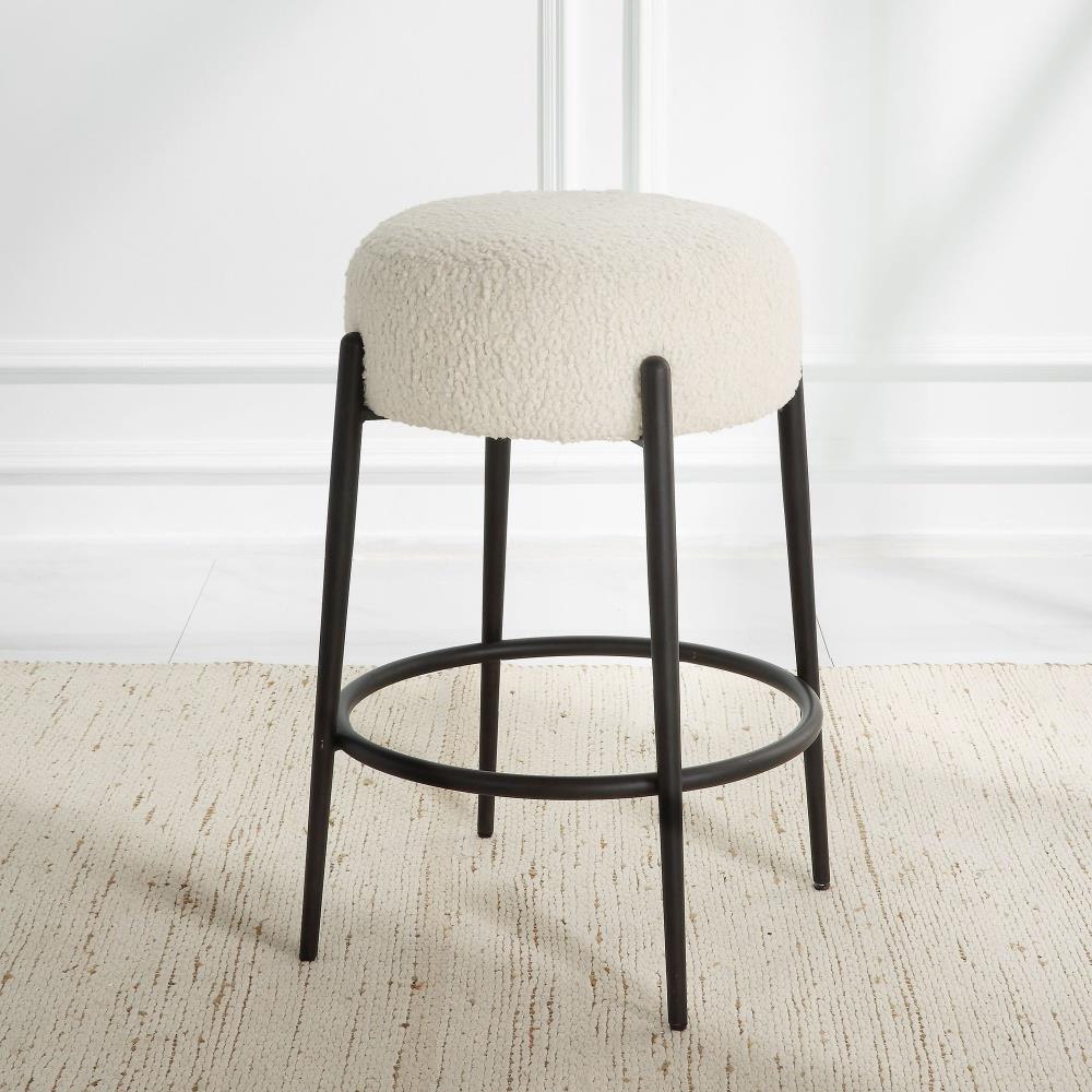 This Plush Counter Stool Is Covered In A Luxurious White Faux Shearling, Suspended Within Satin Black Finished Metal Legs.