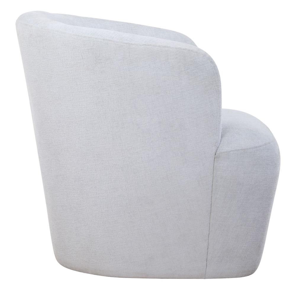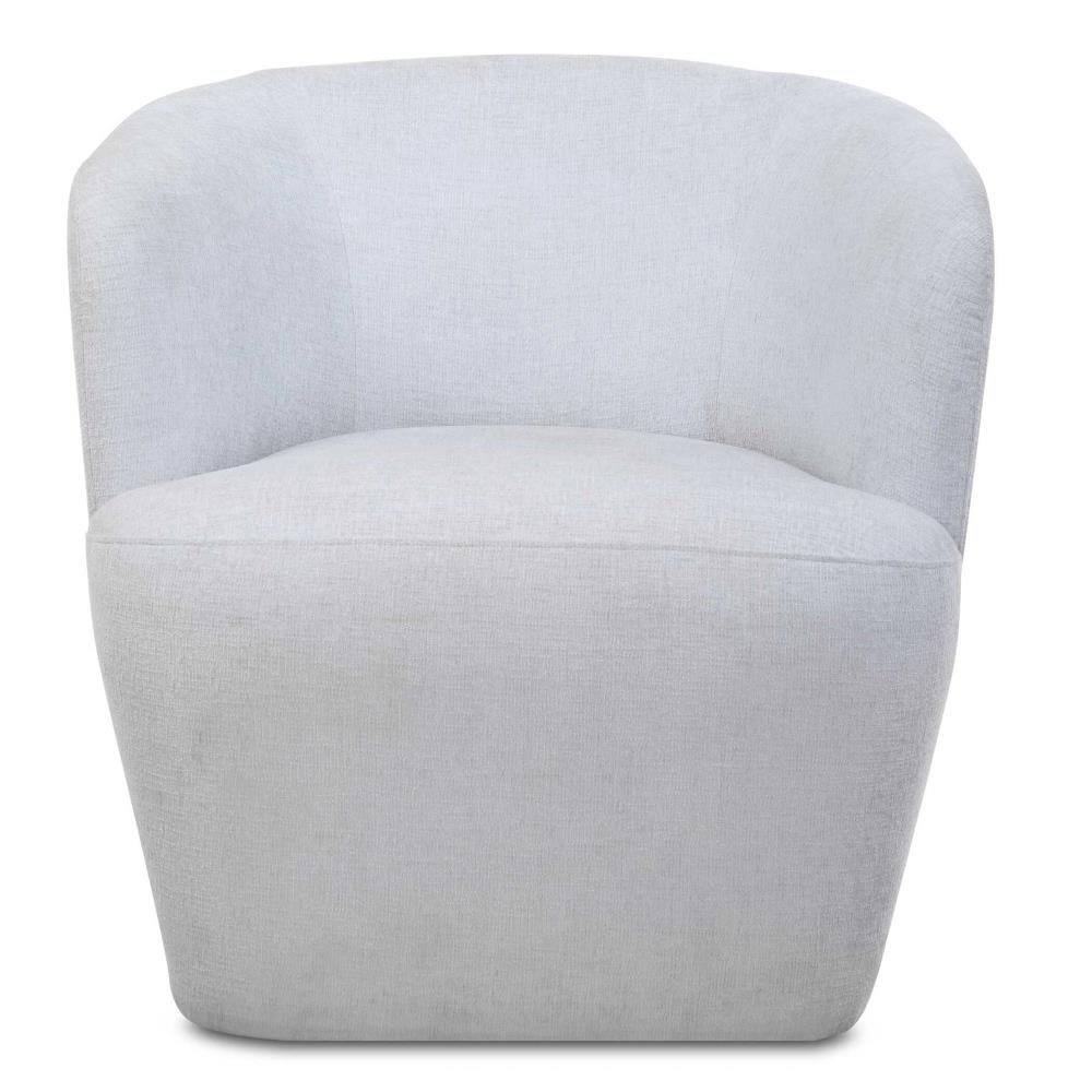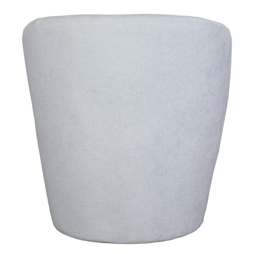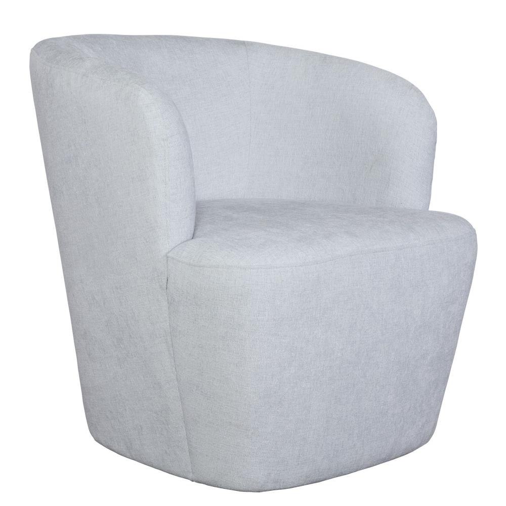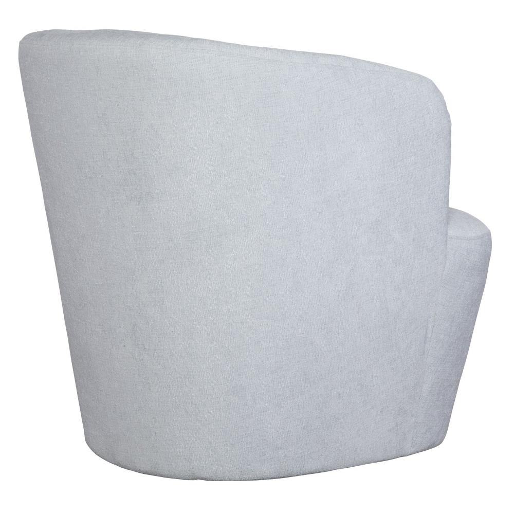 An Airy And Inviting Barrel Style Swivel Chair, Tailored In A Finely Textured, Cleanable Polyester With Exceptional Durability In Light Cloud Blue. Rests Atop A Solid Wood Swivel Base In Matte Black. Seat Height Is 19."