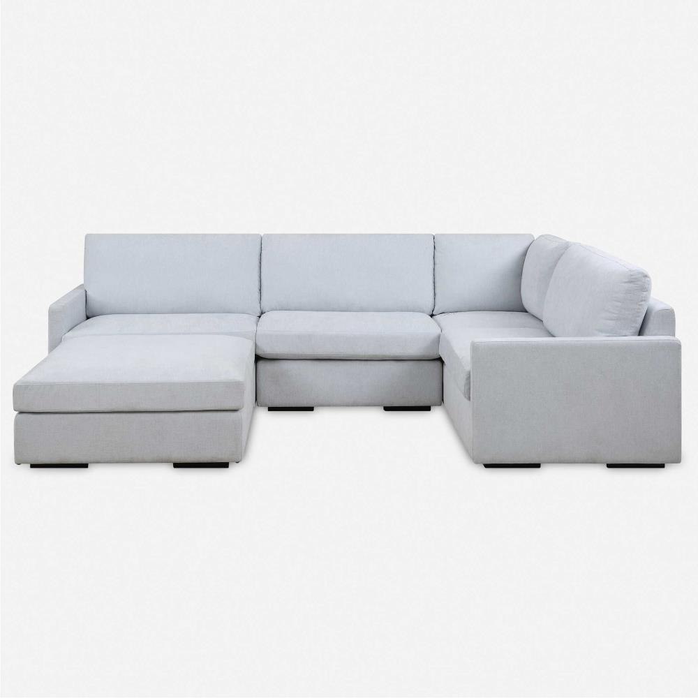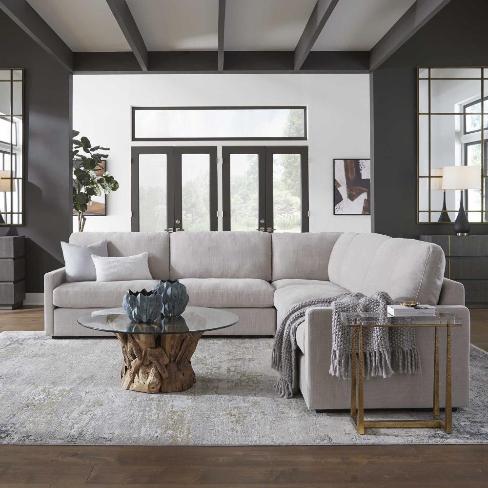 A Modern Silhouette That Offers Style And A Comfortable Place To Curl Up. The Refuge Modular Collection Is Crafted With Premium, High Durability Foam Cores And Synthetic Down Wrap. Featuring The Patented RidgEraser Technology To Ensure Consistent Comfort Between Cushions. Upholstered In A Velvety Textured, Cleanable, Recycled Polyester Fabric With Textured Details In Light Sand. Seat Height Is 20".