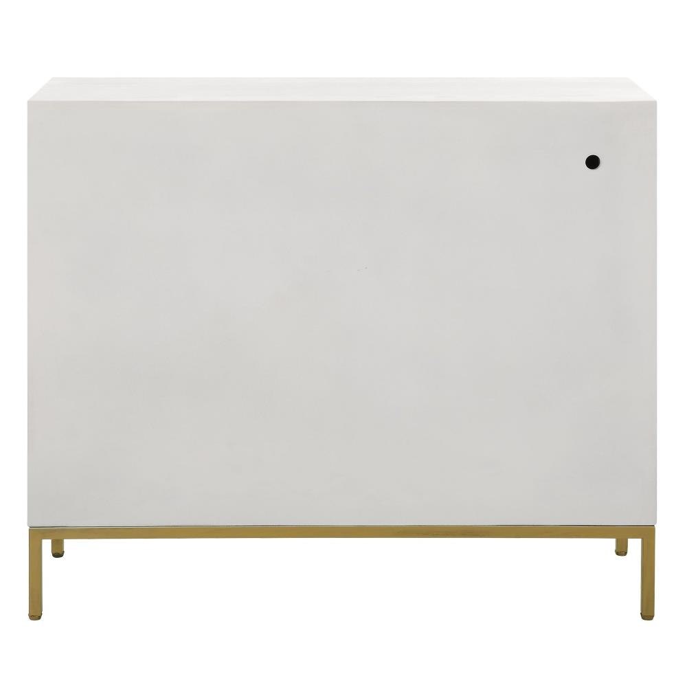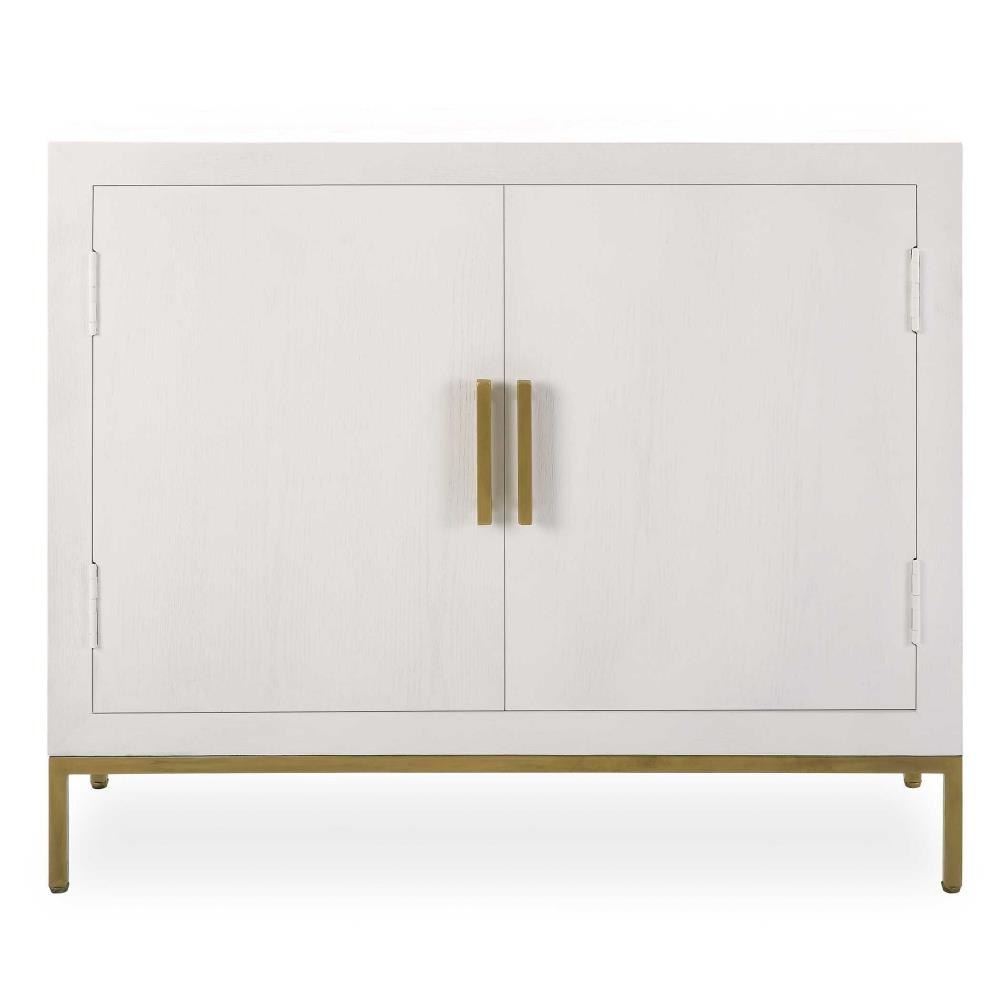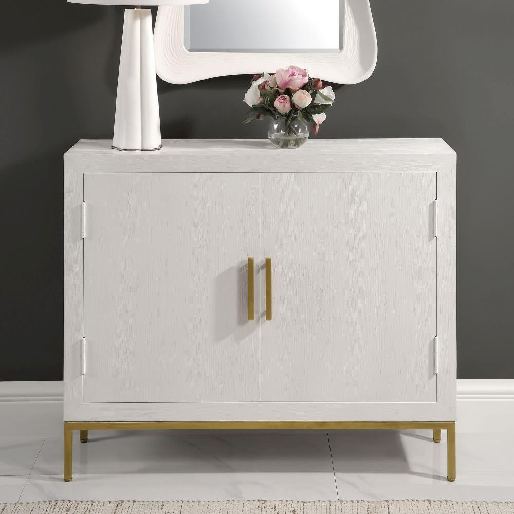 The Front Range Cabinet's Streamlined Design And Classic Finishes Make It A Perfect Addition To Virtually Any Space. The Exterior Is Oak Veneer With A Painted White Finish, Accented With Aged Gold Iron. Has One Interior Fixed Shelf.