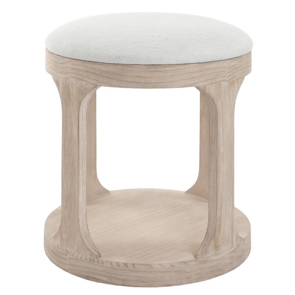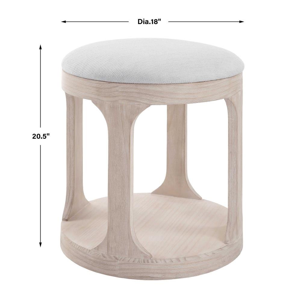 Doubling As A Footrest Or Extra Seating With A Light And Airy Feel In Oak Finished Pine Wood And Topped With Off-white Waffle Weave Polyester Blend Fabric.