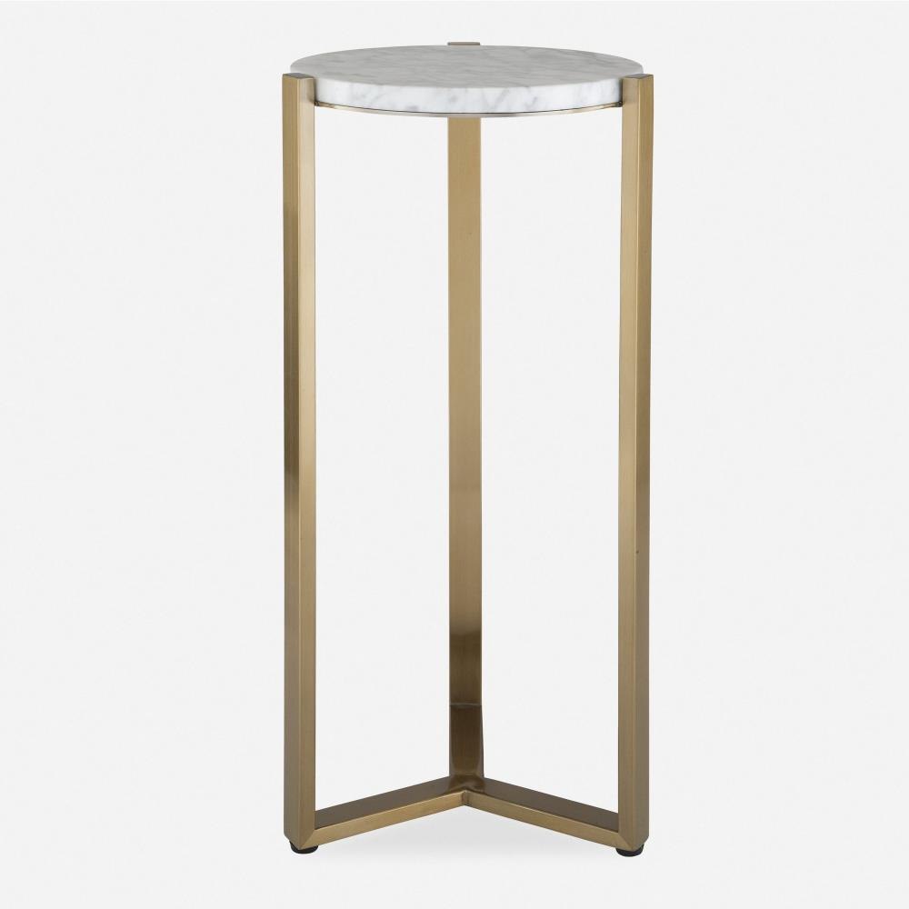 Three Sturdy Antique Brass Finished Legs Fused With A Carrara Marble Top Combine To Create Stability And Elegance In The Pietra Drink Table.