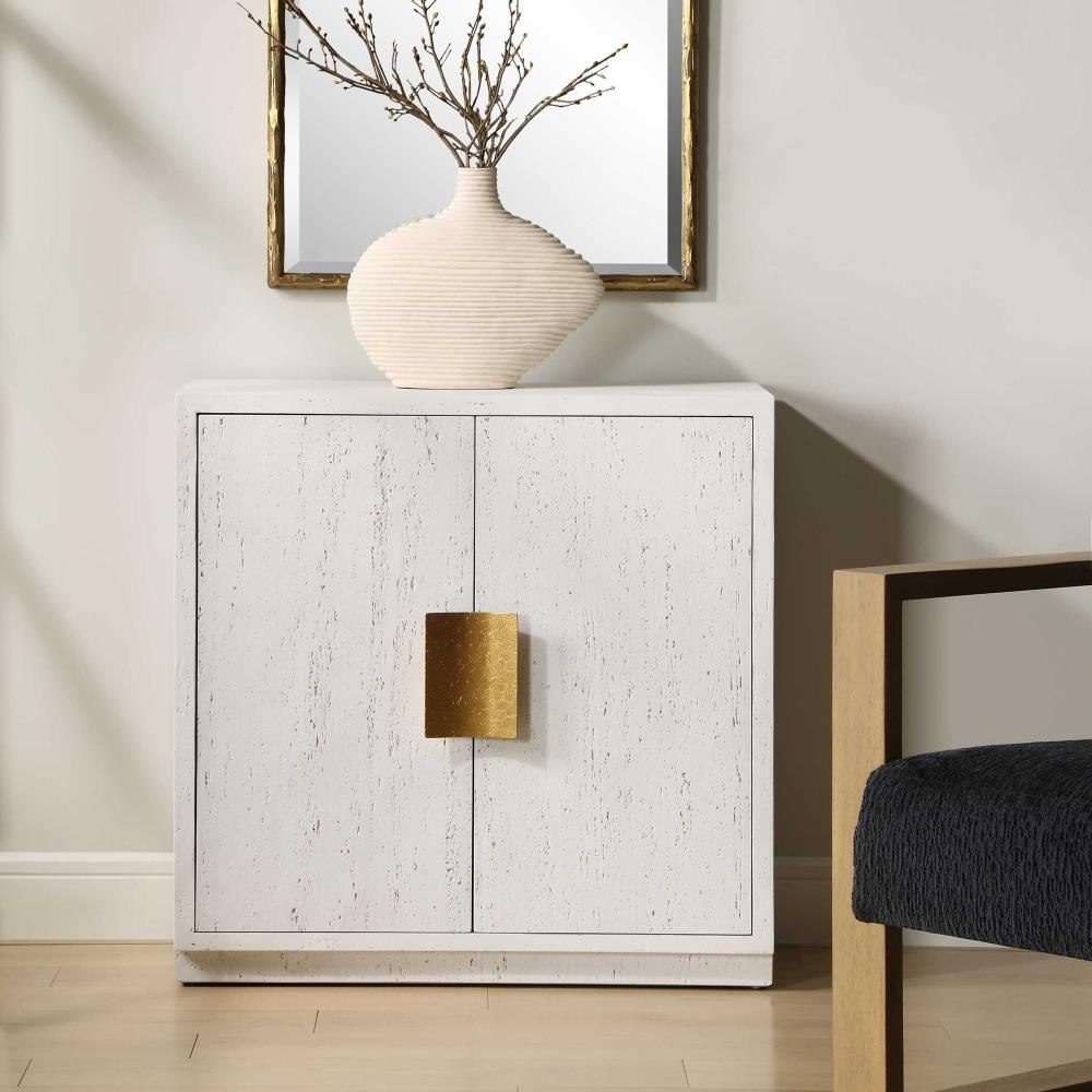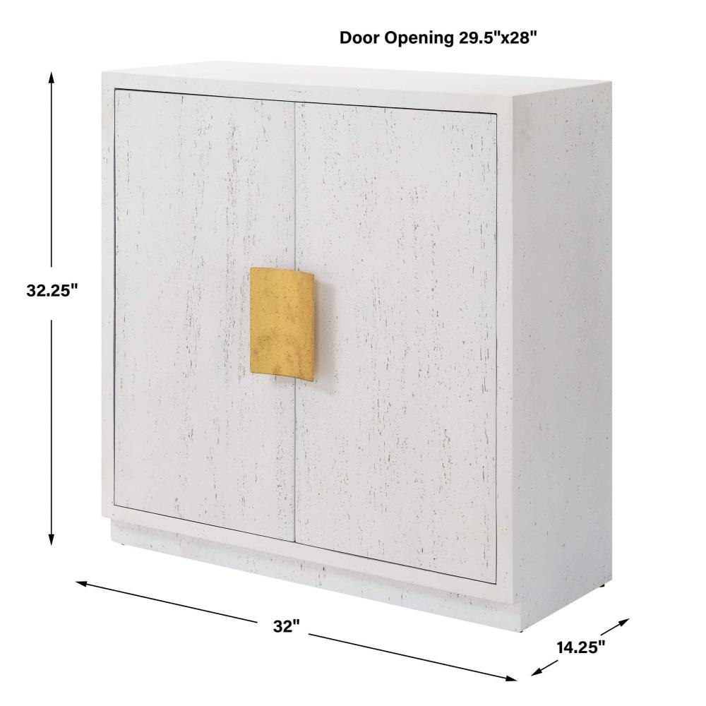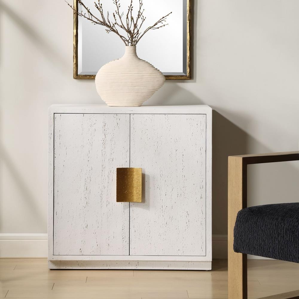 A Stylish Two Door Cabinet Crafted From Cast Resin. Emma Features A Porous Textured Surface For An Organic Look And A Tactile Perception. Glowing Hardware In Antique Gold Iron Has A Concave Shape With Mottled Texturing. A Slate Blue Interior Offers A Fun Surprise With Two Adjustable Shelves.